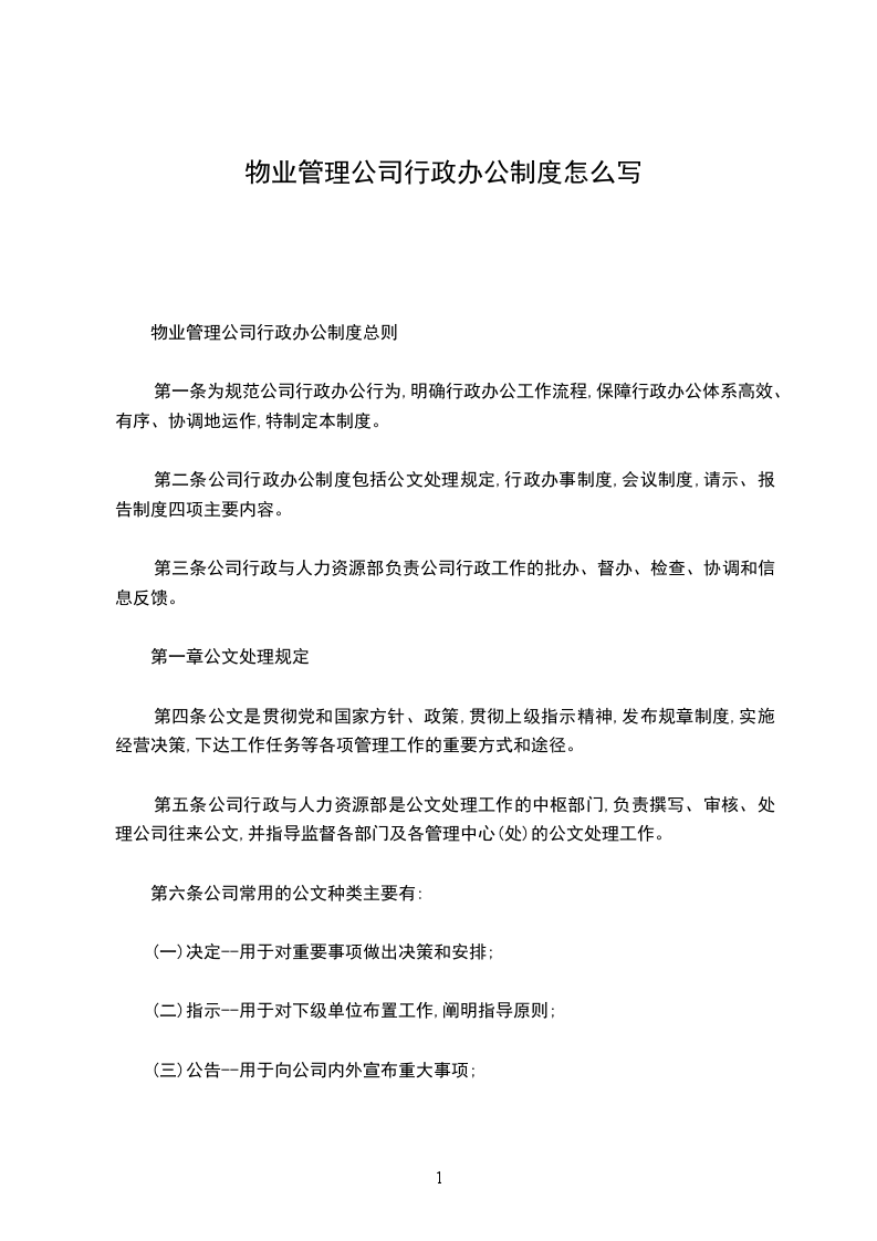 第二条公司行政办公制度包括公文处理规定,行政办事制度,会议制度,请示、报告制度四项主要内容。