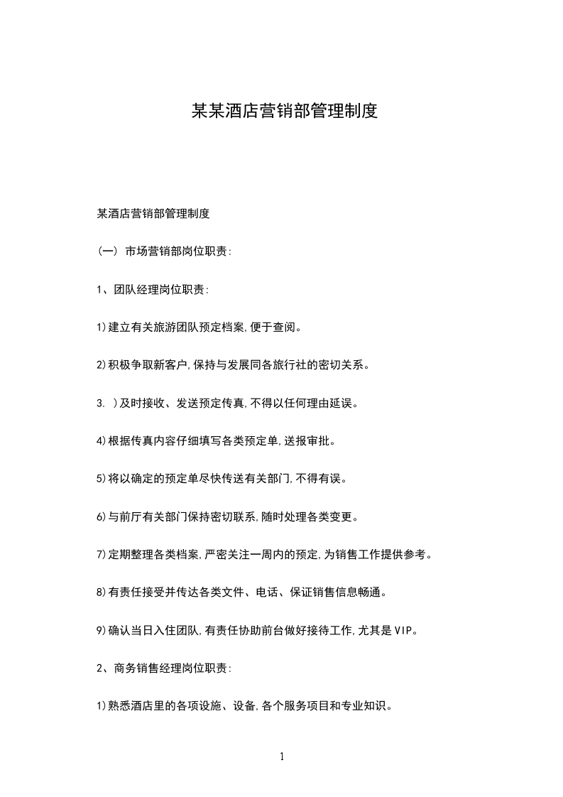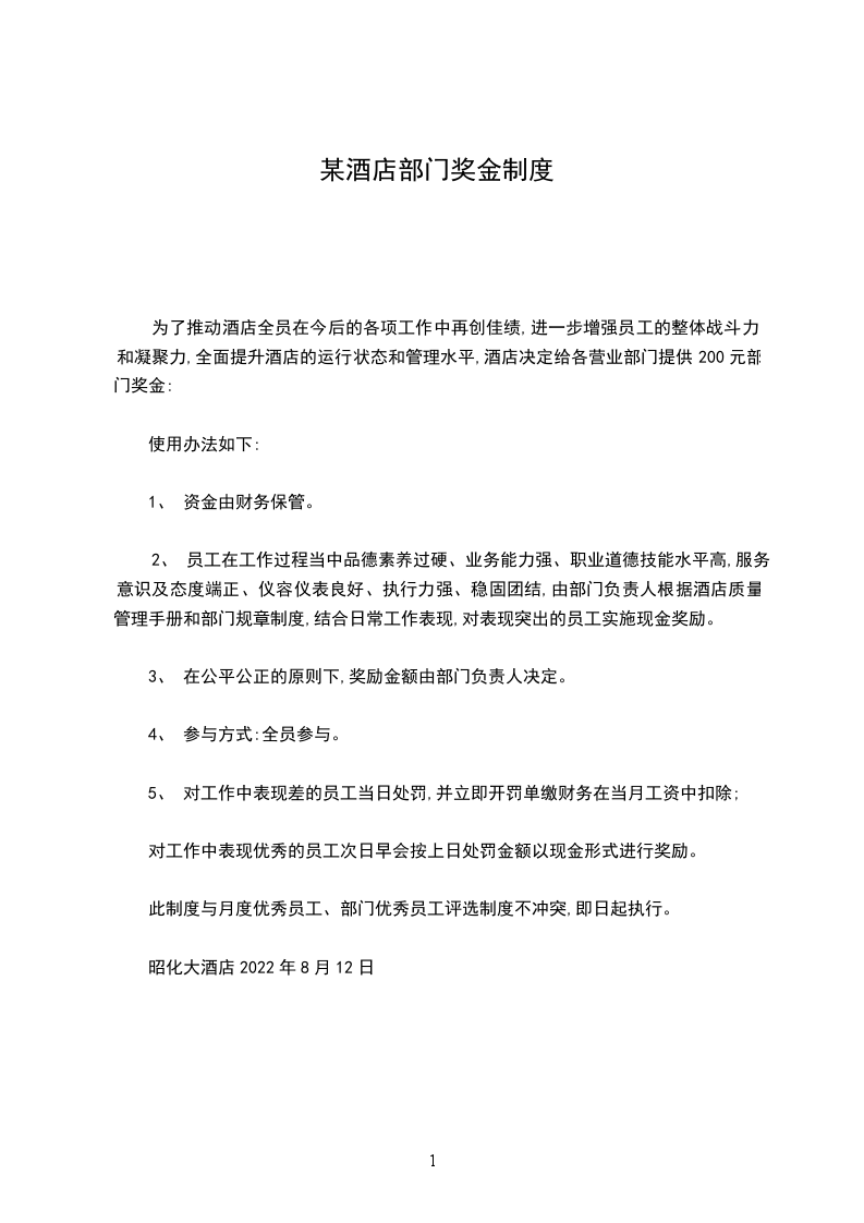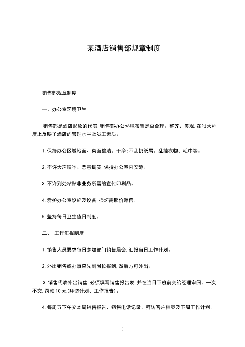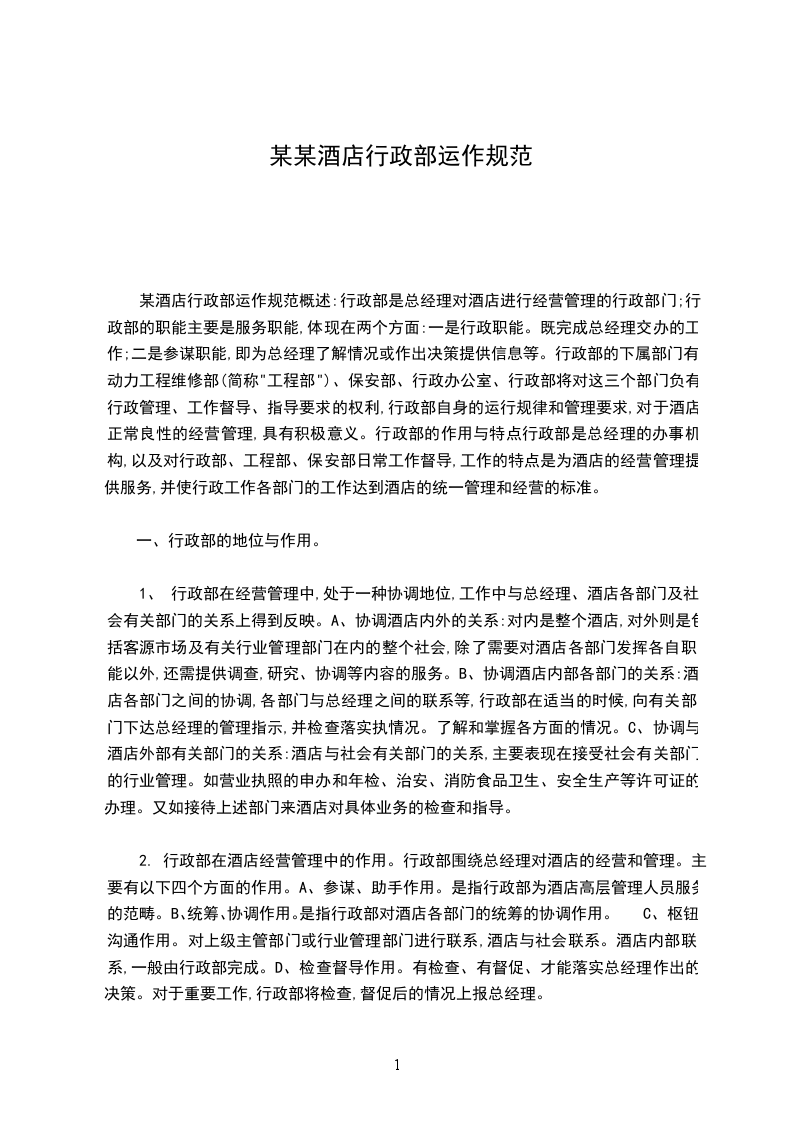 某酒店行政部规章制度行文规定制度