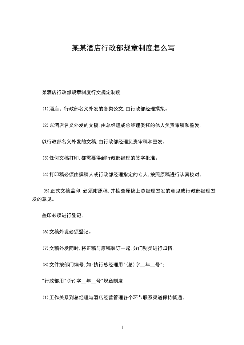 (1)酒店、行政部名义外发的各类公文,由行政部经理撰拟。