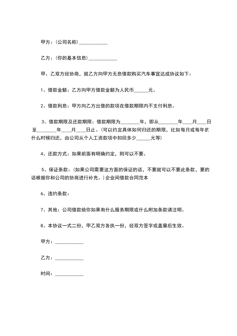 四、还款方式 乙方应按照本合同规定时间主动偿还对甲方的`欠款及利息。乙方到期还清所有本合同规定的款项后,甲方收到还款后将借据交给乙方。 甲方指定的还款账户为: 开户银行: 账户名称: 账 号: