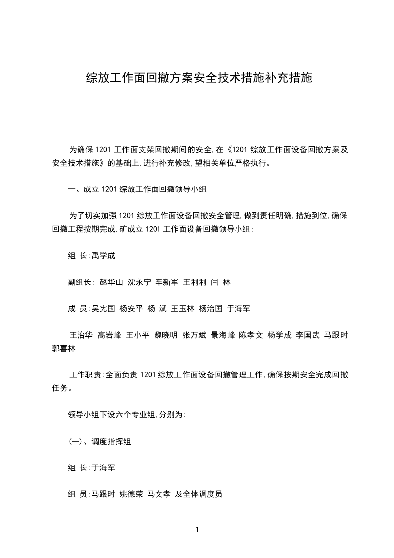 1、支架由工作面机头向机尾处逐架拆除,并每班必须由班组长统一指挥,安全管理人员跟班作业。