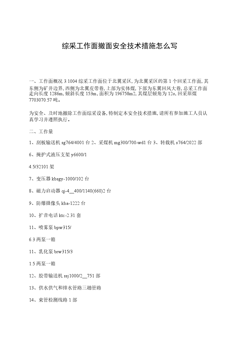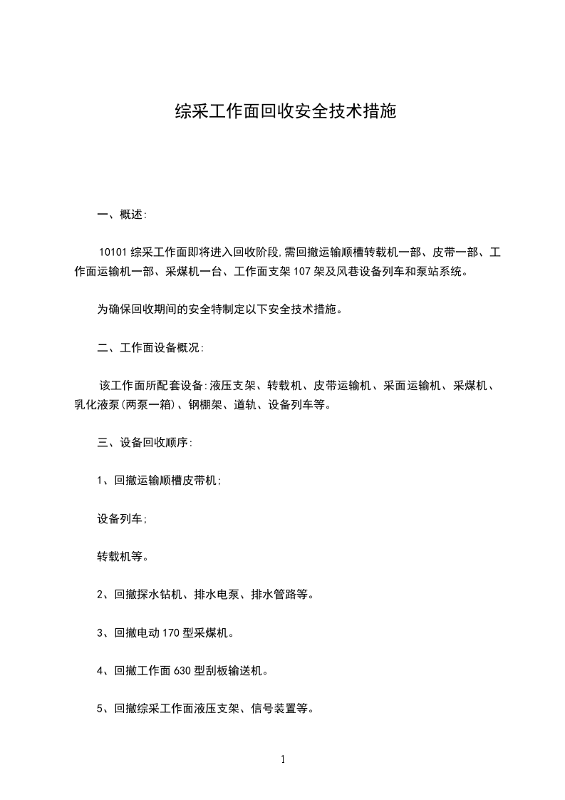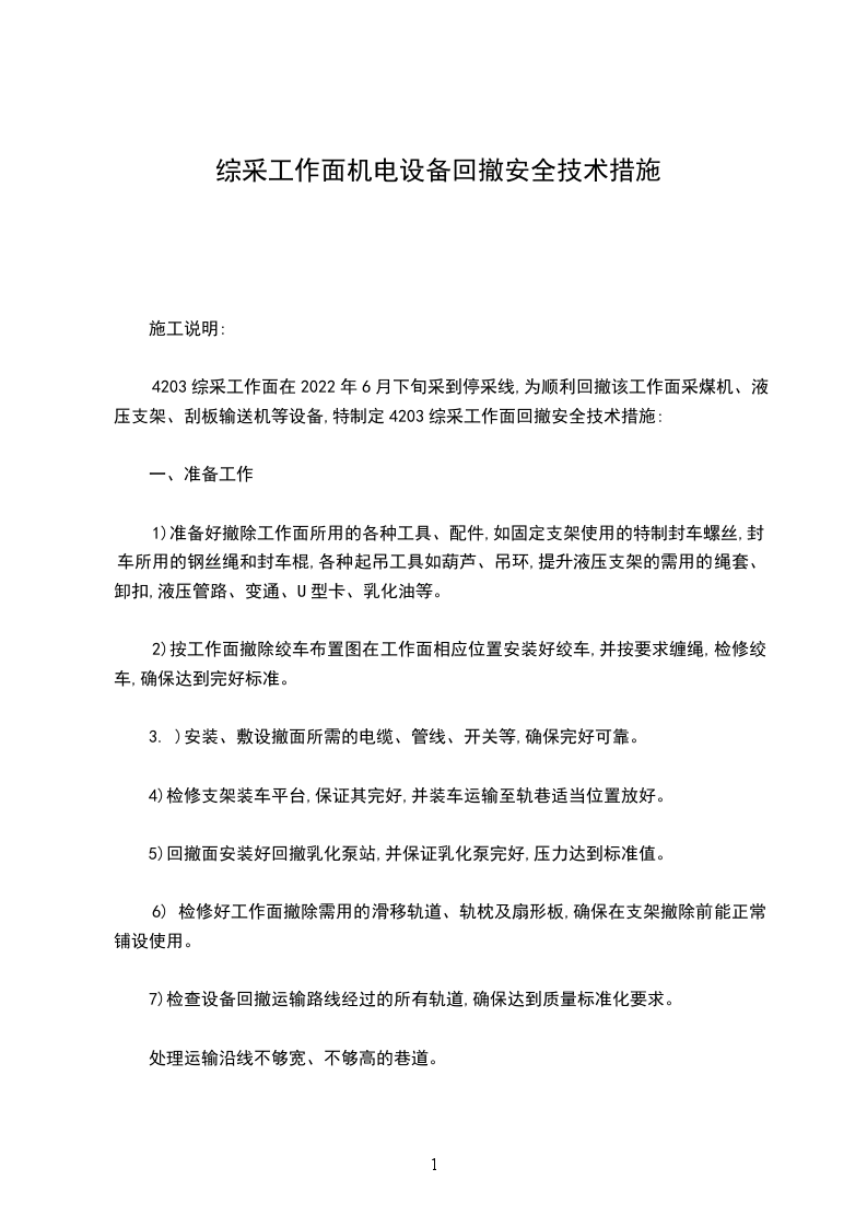 现根据工作面地质情况、设备型号、拆除运输路线等实际情况,制定回撤设备方案及安全技术措施。