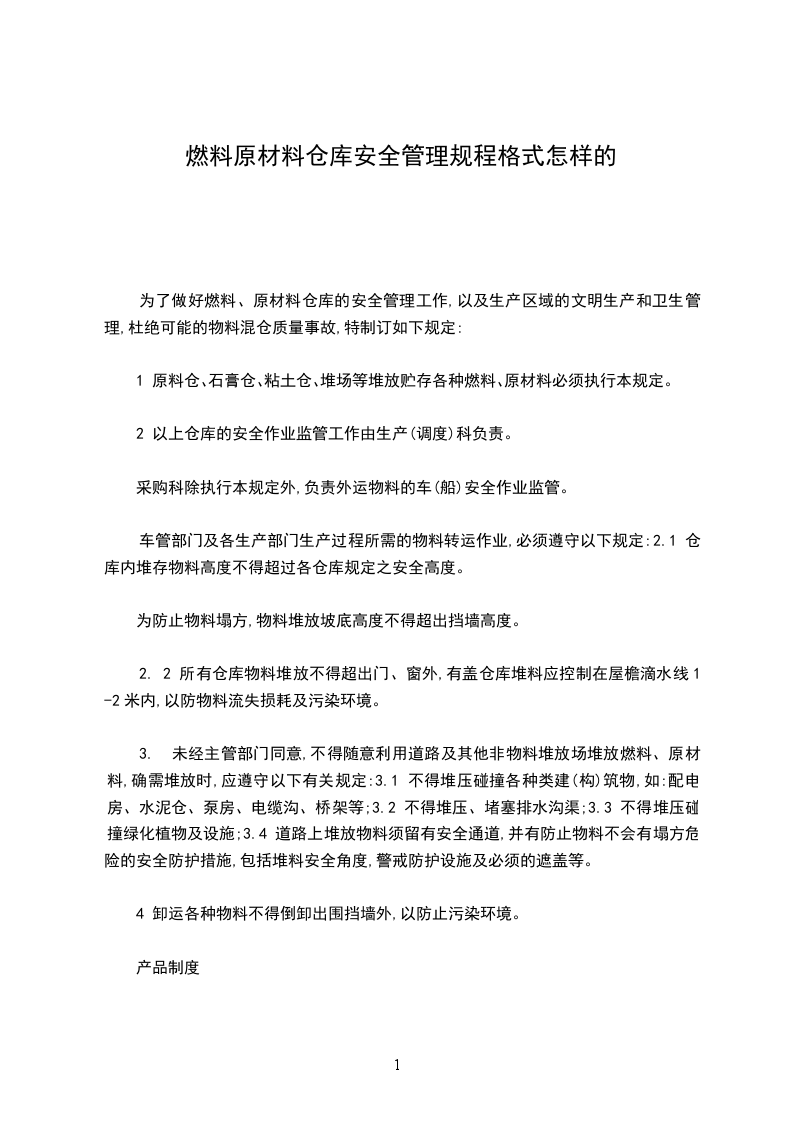 1 原料仓、石膏仓、粘土仓、堆场等堆放贮存各种燃料、原材料必须执行本规定。