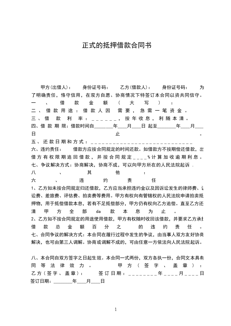 1、乙方如未按合同规定归还借款,乙方应当承担违约金以及因诉讼发生的律师费、诉讼费、差旅费、评估费、拍卖费等费用。甲方有权向有管辖权的人民法院申请拍卖抵押物,用于抵偿借款本息,若有不足抵偿部分,甲方仍有权向乙方追偿。直至乙方还清甲方全部da款本息为止。