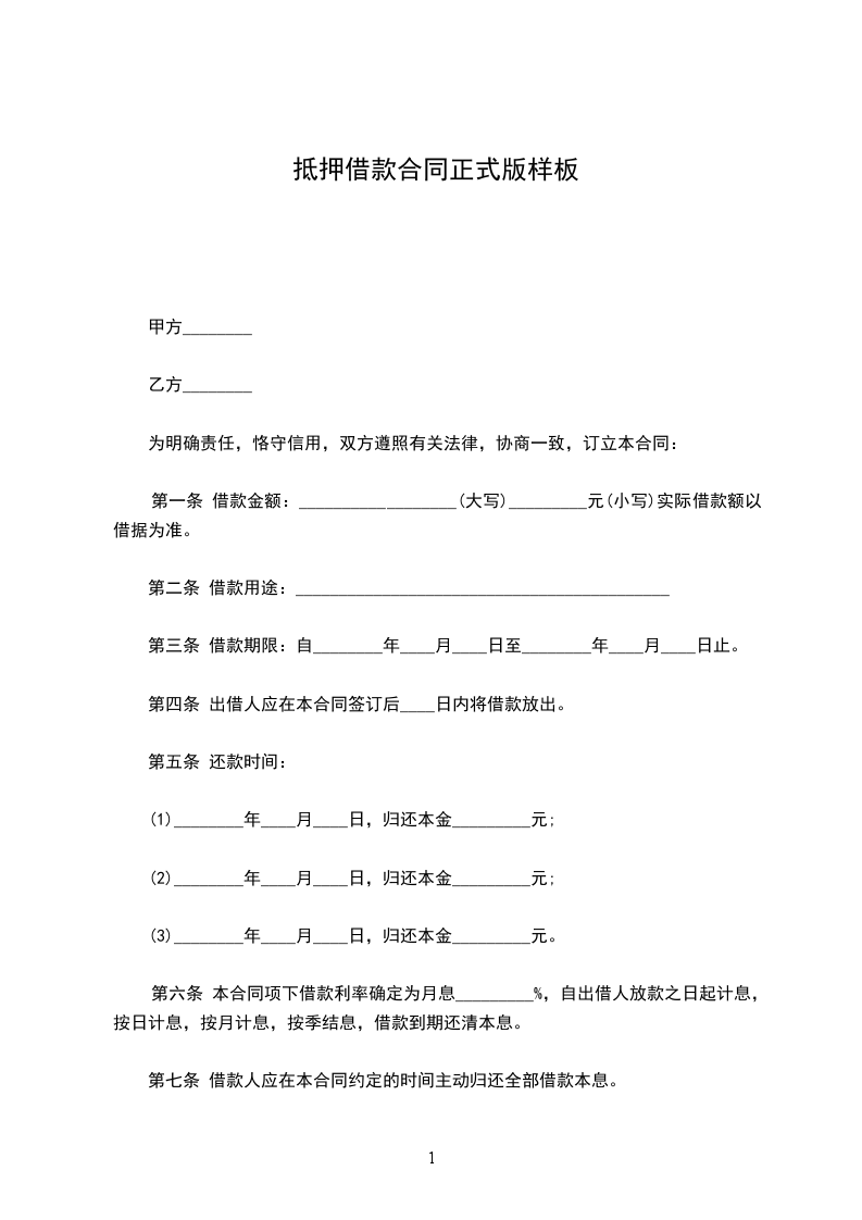 一、借款金额(大写):
