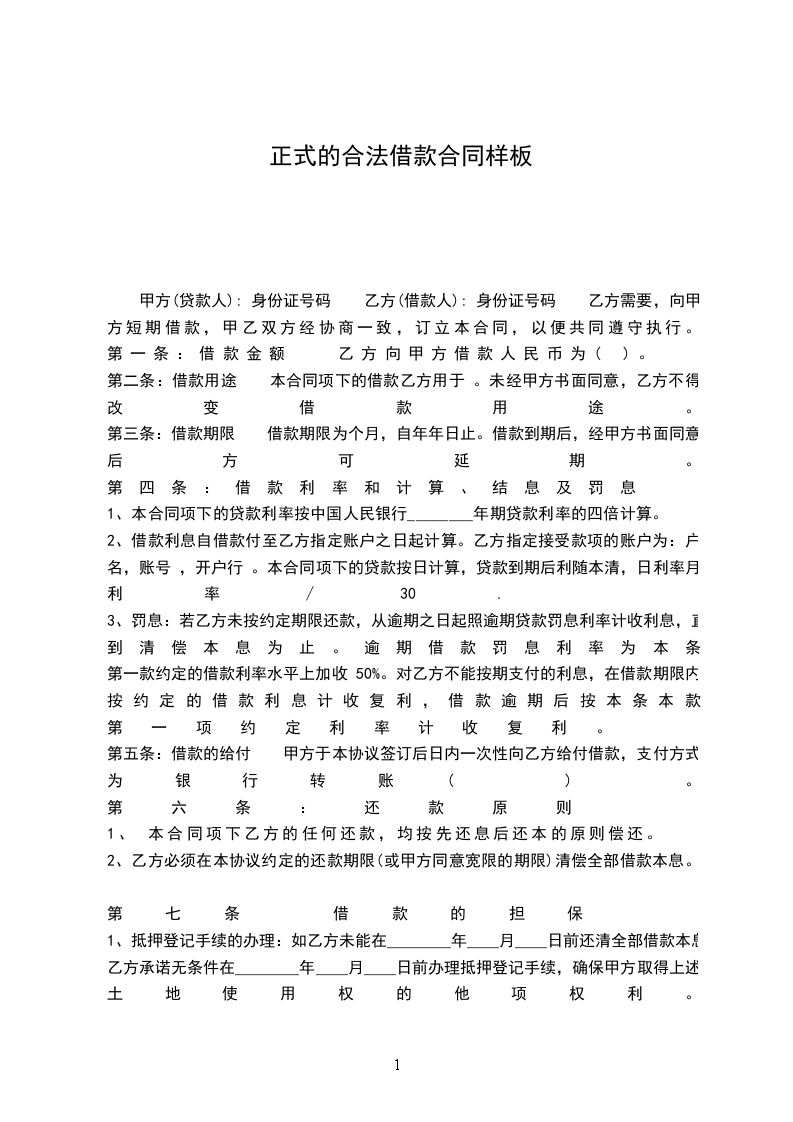 甲方(贷款人): 身份证号码 乙方(借款人): 身份证号码 乙方需要,向甲方短期借款,甲乙双方经协商一致,订立本合同,以便共同遵守执行。