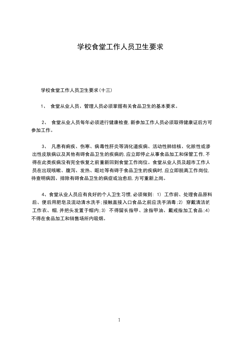 3、从业人员应保持良好个人卫生,操作时应穿戴清洁的工作服、工作帽,头发不得外露,不得留长指甲,涂指甲油,佩带饰物;