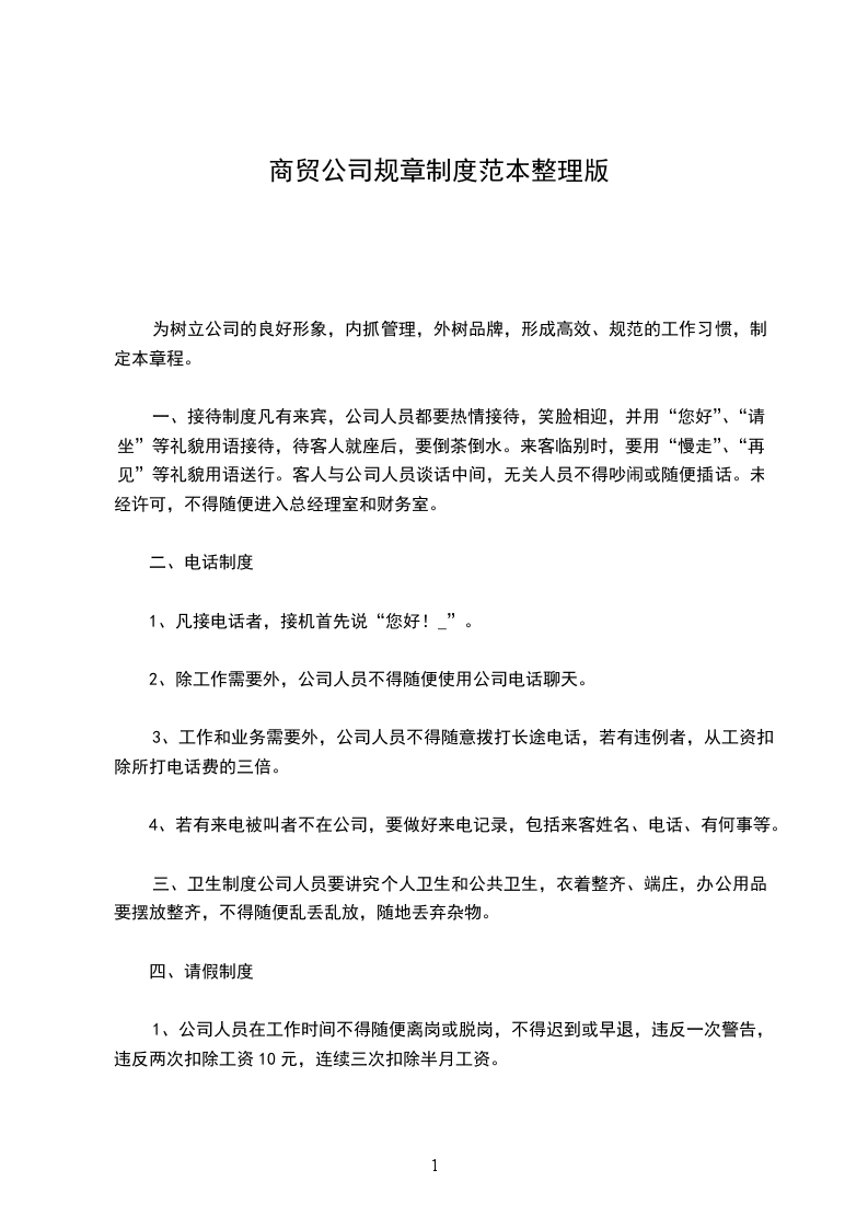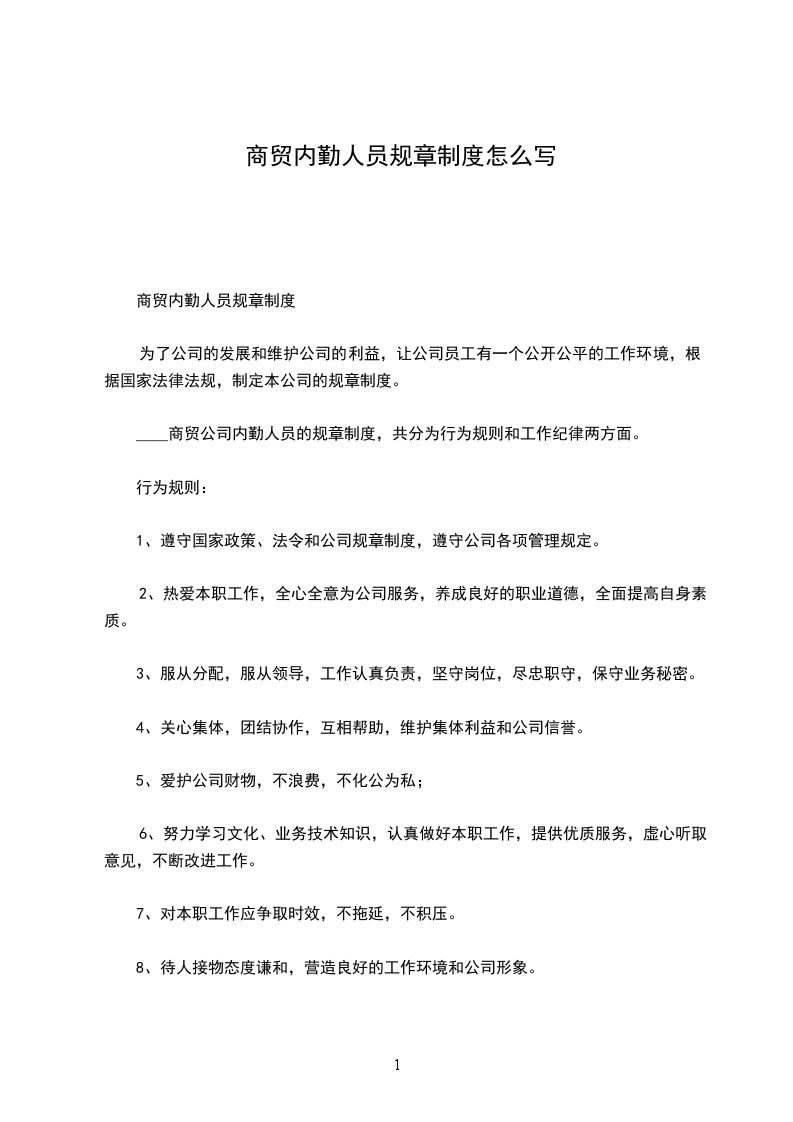 ____商贸公司内勤人员的规章制度,共分为行为规则和工作纪律两方面。