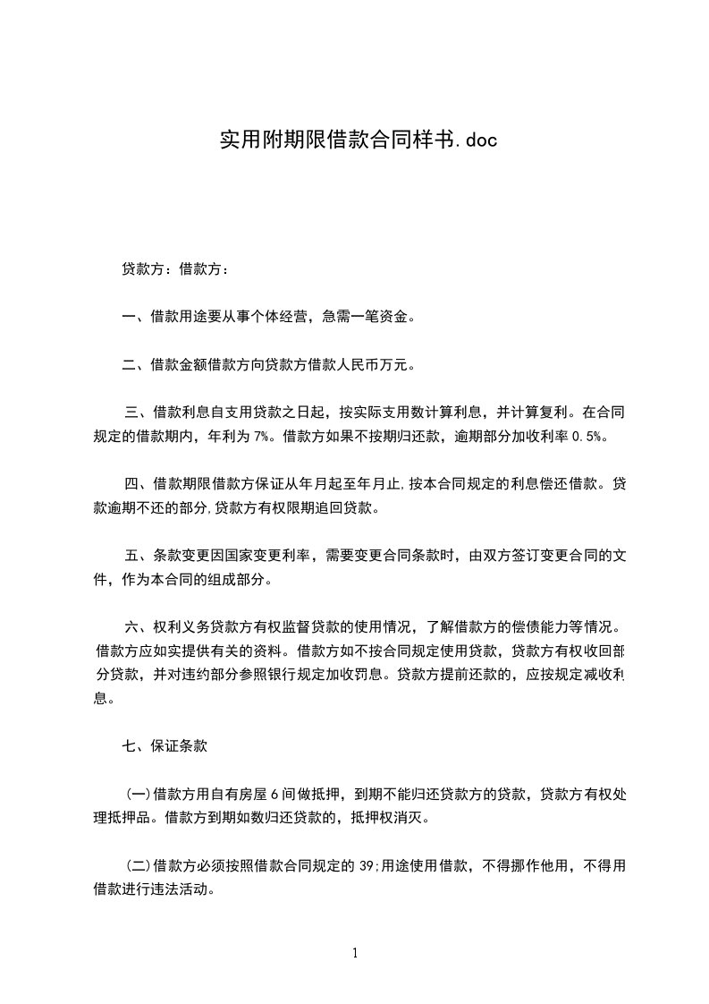 四、借款期限 借款方保证从年月起至年月止,按本合同规定的利息偿还借款。贷款逾期不还的部分,贷款方有权限期追回贷款。