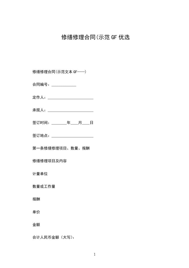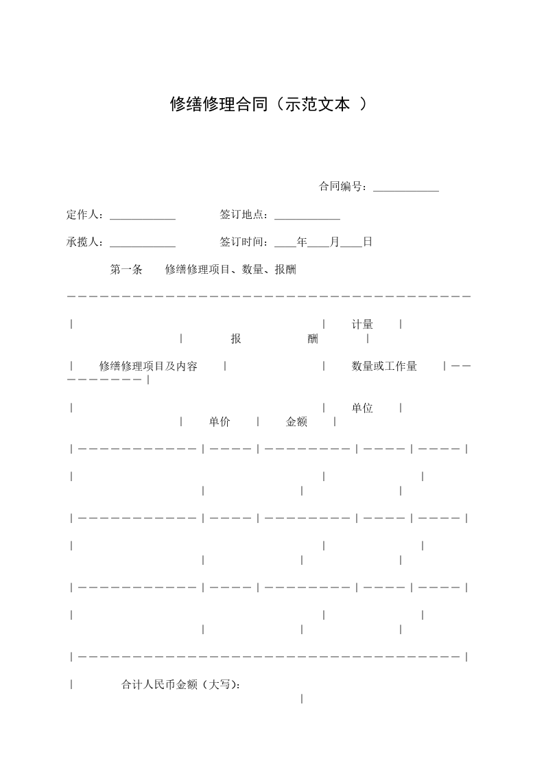 第一条 修缮修理项目、数量、报酬