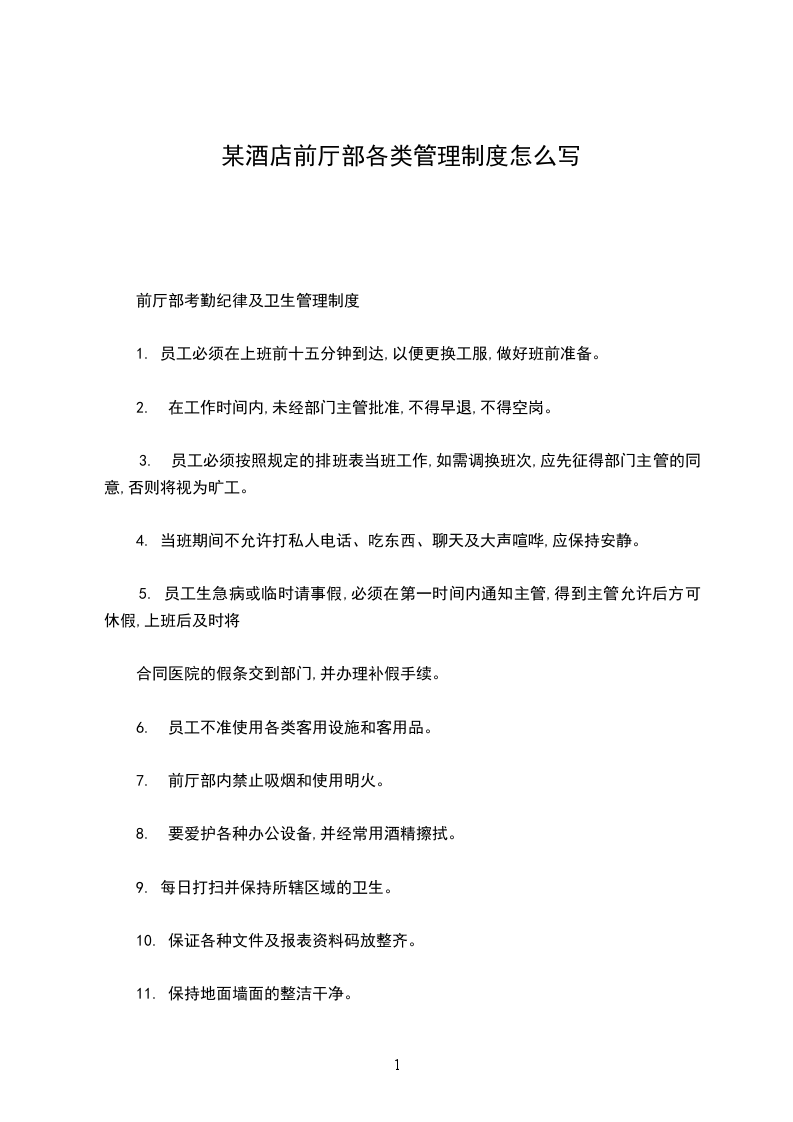 某酒店前厅部各类管理制度怎么写