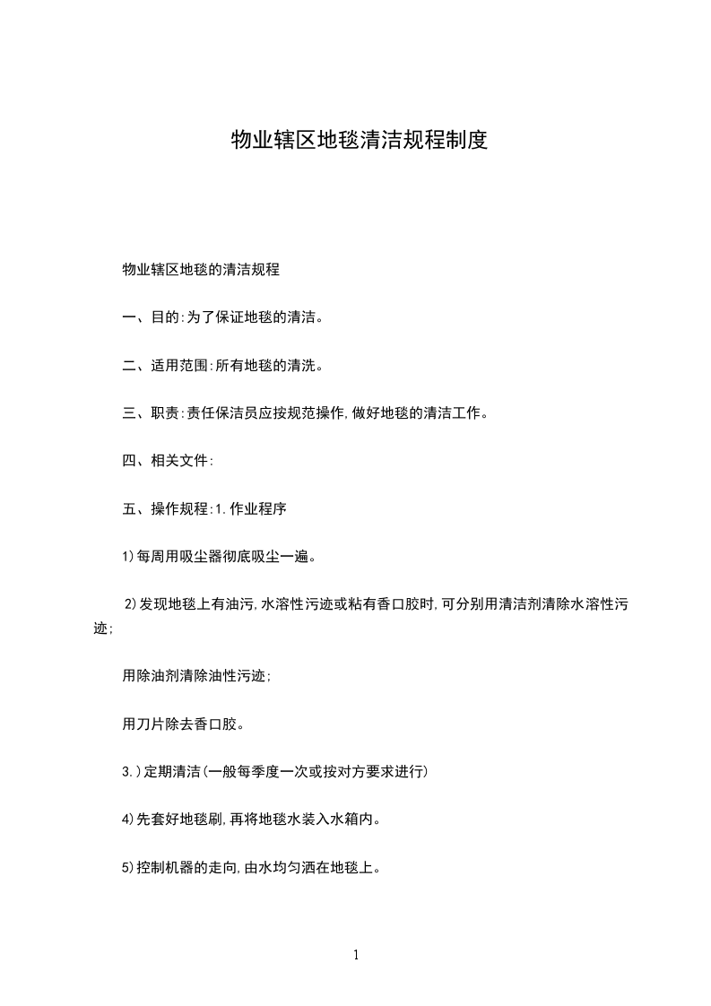 2、适用范围适用于物业管理公司辖区内公共场地的环境清洁管理。