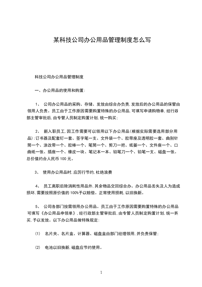 科技公司办公用品管理制度