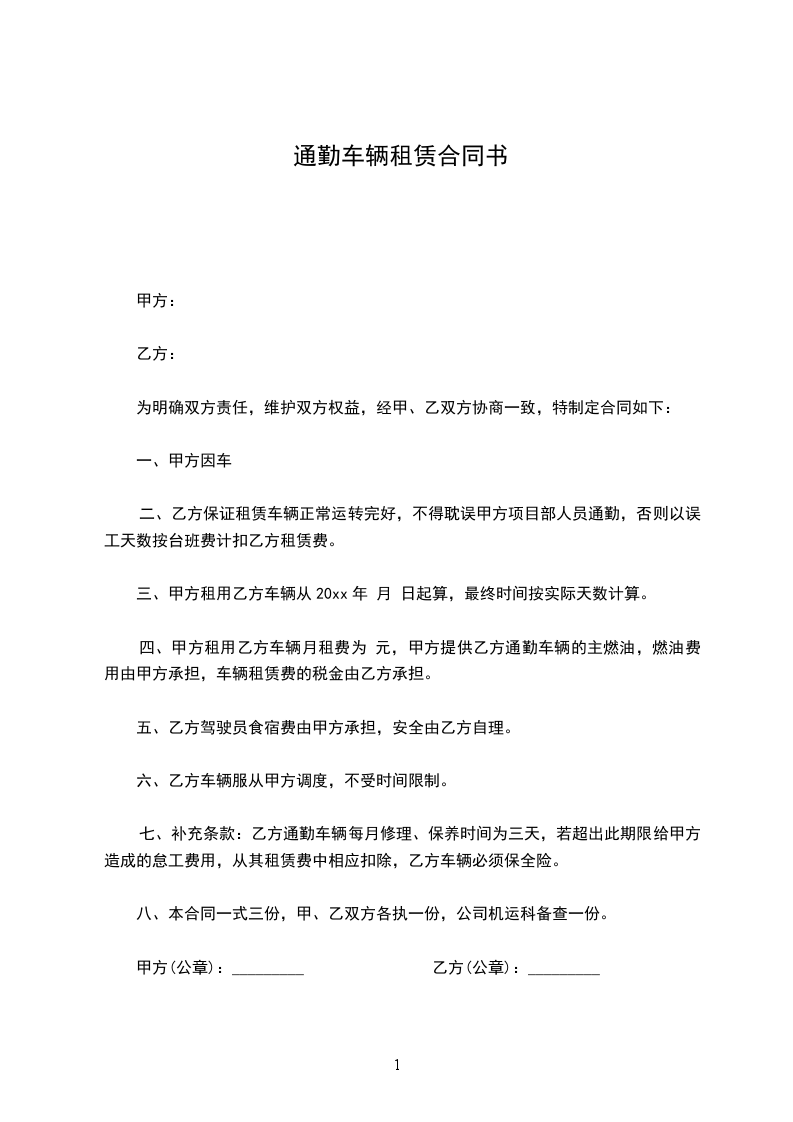 1、租赁价格:每月租赁费用人民币一万元,大写一万元整(此费用包括司机费用)。