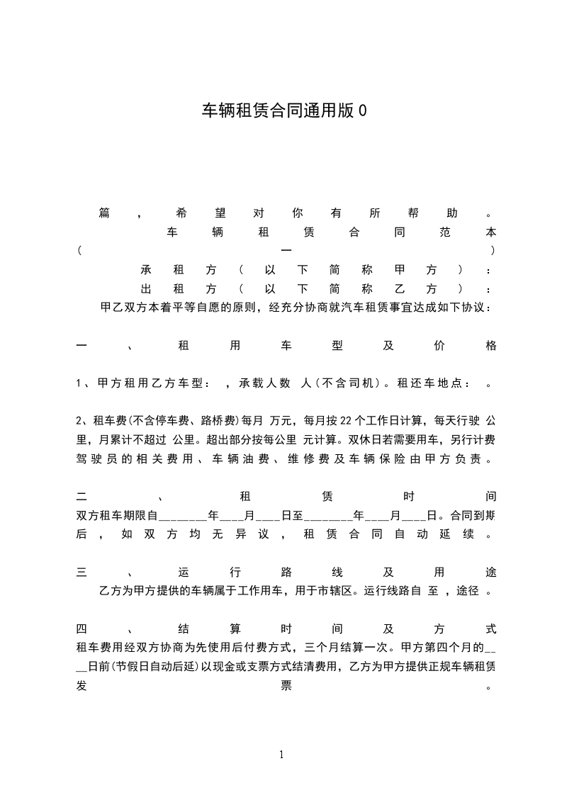 根据《民法典》的有关规定,按照平等互利的原则,为明确出租方与承租方的权利义务,双方经友好协商,就车辆的租赁事宜达成一致意见,同意按下列条款签订本协议。