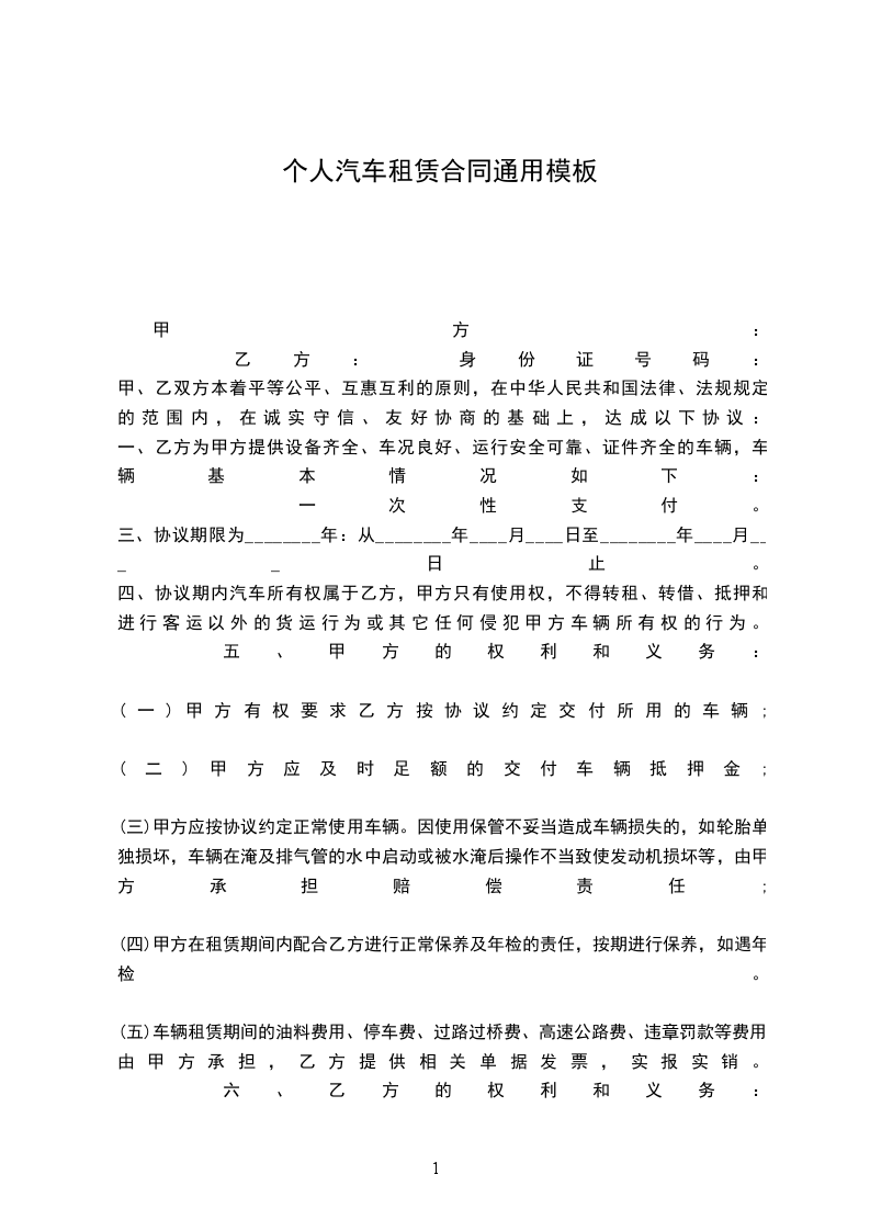 一、乙方为甲方提供设备齐全、车况良好、运行安全可靠、证件齐全的车辆,车辆基本情况如下: