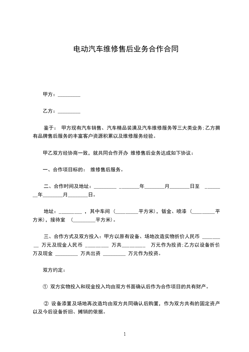 甲乙双方经协商一致,就共同合作开办______________ 维修售后业务达成如下协议: