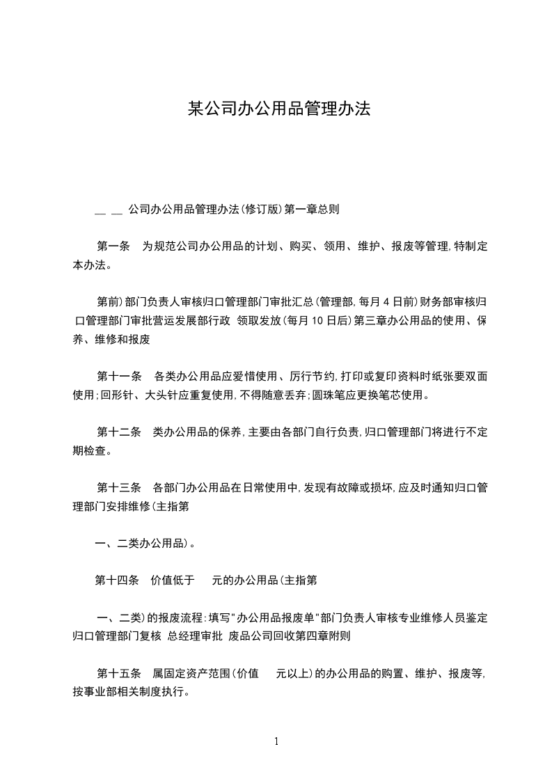 第十三条 各部门办公用品在日常使用中,发现有故障或损坏,应及时通知人力行政部安排维修(主指第一、二类办公用品)。