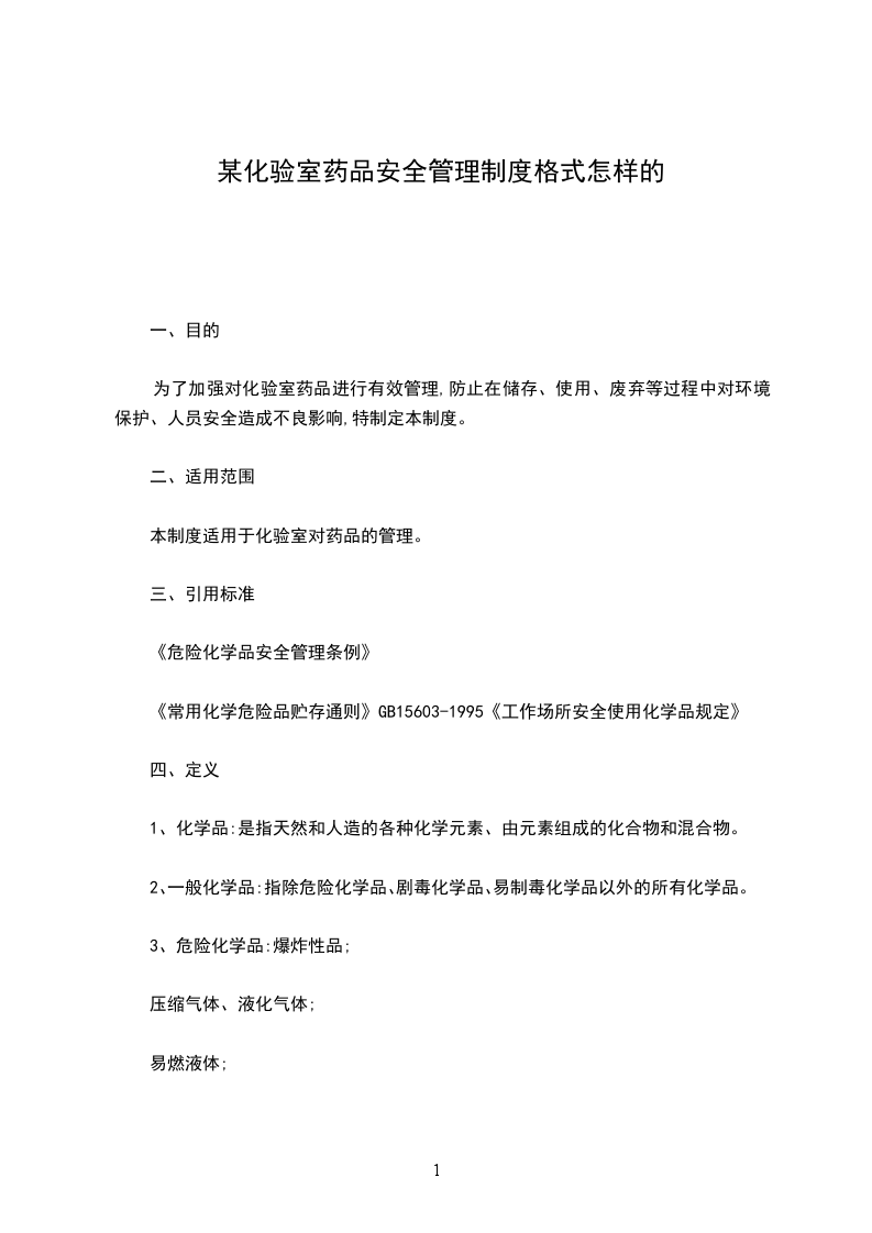 为了加强对化验室药品进行有效管理,防止在储存、使用、废弃等过程中对环境保护、人员安全造成不良影响,特制定本制度。