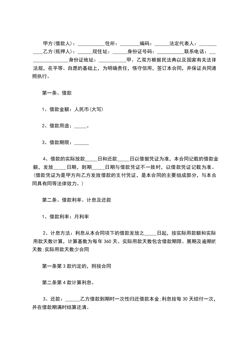 甲方(借款人): 身份证号码: 乙方(贷款人): 身份证号码: 甲乙双方就借款事宜,在平等自愿、协商一致的基础上达成如下协议,以资双方共同遵守。