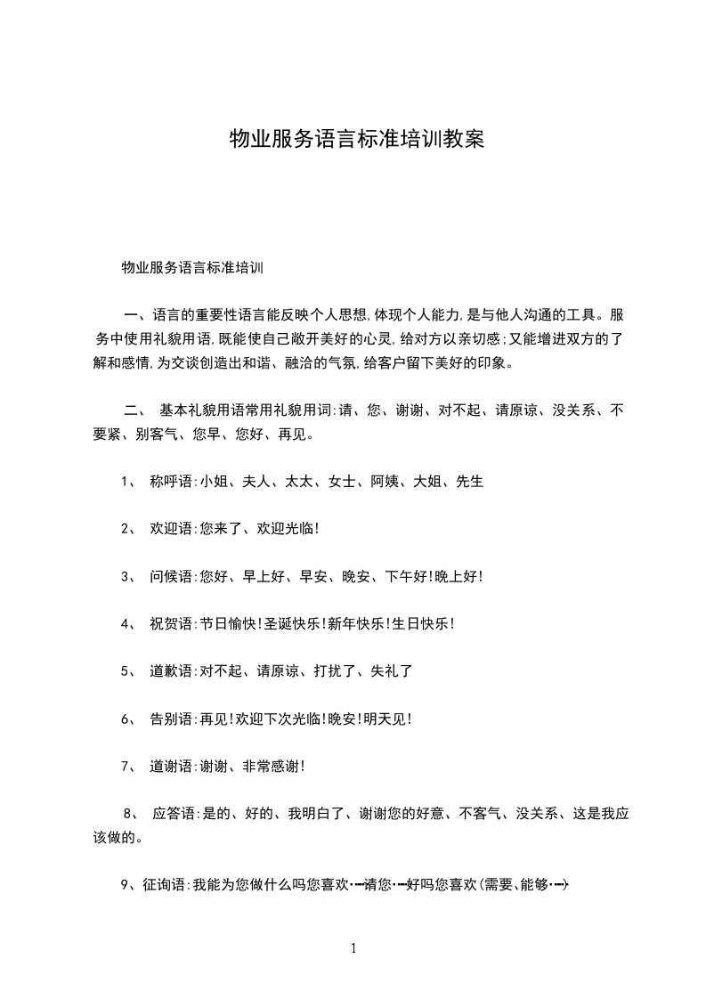 物业保安服务语言规范