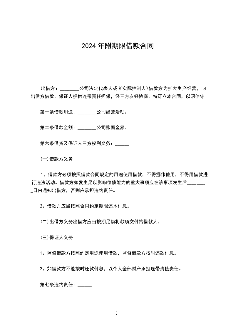 第一条 借款金额 甲方向乙方借款人民币(大写)_________________________元。
