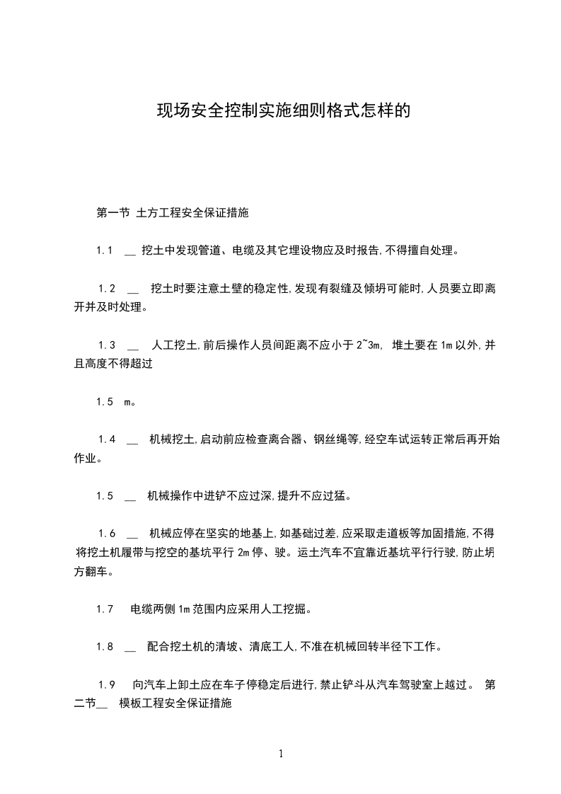 1.9 向汽车上卸土应在车子停稳定后进行,禁止铲斗从汽车驾驶室上越过。 第二节__ 模板工程安全保证措施
