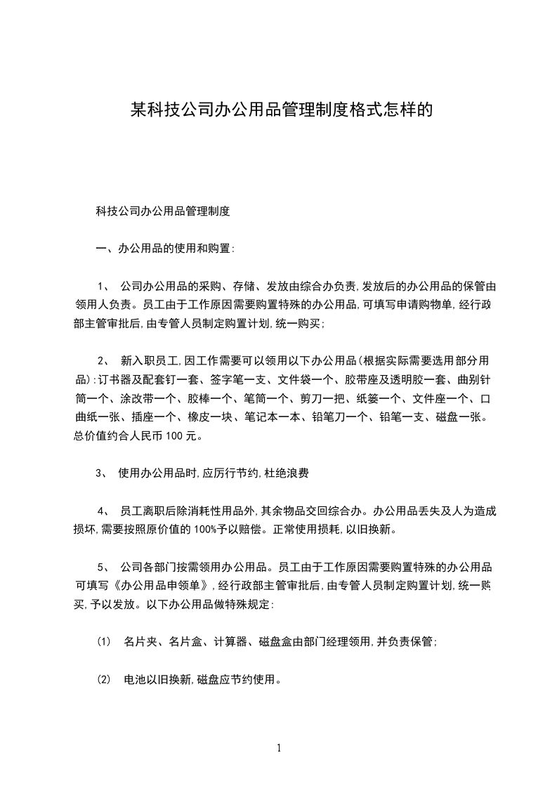 科技公司办公用品管理制度