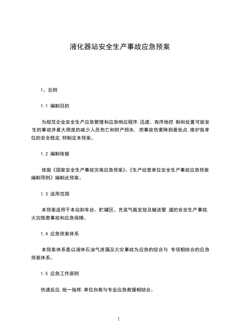 本预案适用于本站卸车台、贮罐区、充装气瓶发放及输送管 道的安全生产事故,火灾隐患事故和应急保障。