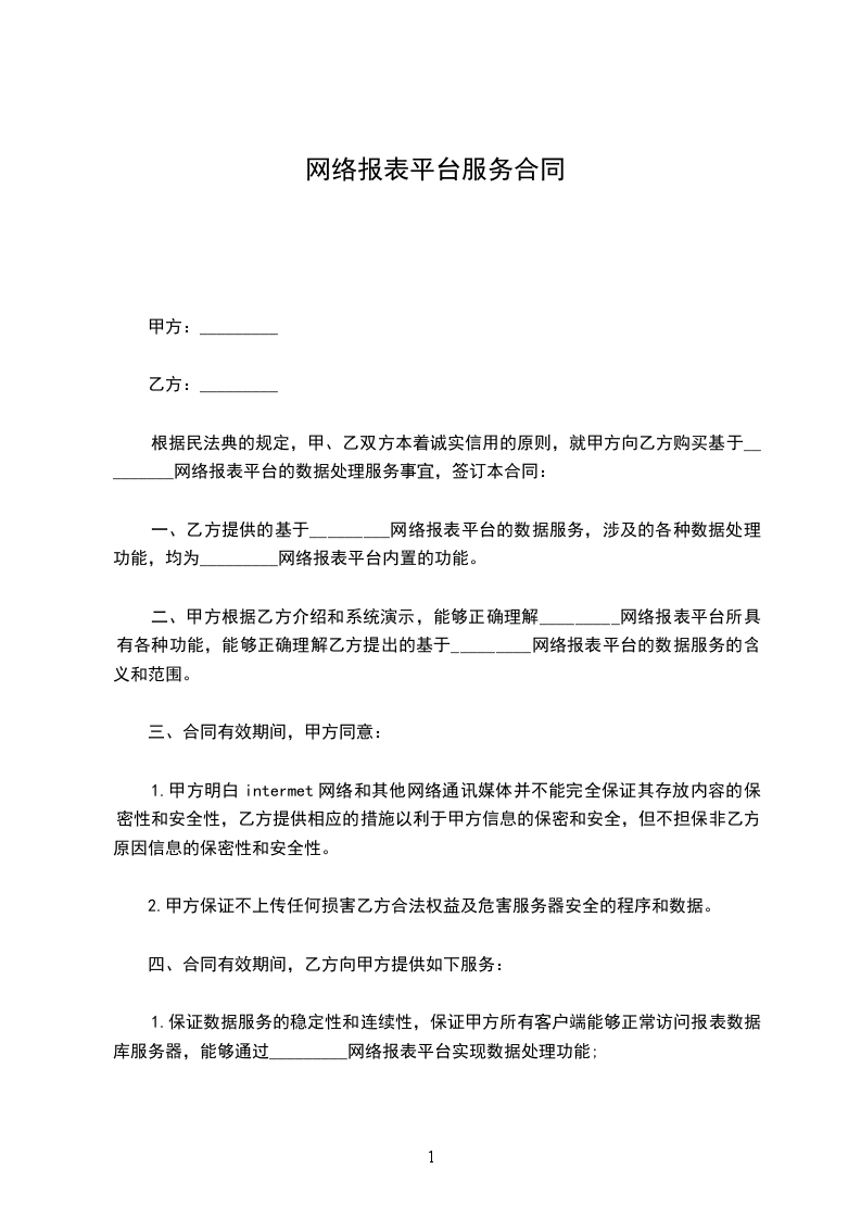 根据民法典的规定,甲、乙双方本着诚实信用的原则,就甲方向乙方购买基于_________网络报表平台的数据处理服务事宜,签订本合同: