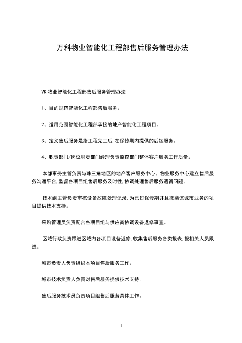 5.1.4项目组售后服务人员每月填写《智能化工程售后服务月报》,经城市负责人审核报区域行政汇总,报区域主管、分管经理助理审核后以邮件形式主送当地物业服务中心维修主管,抄送给物业服务中心负责人、本部事务主管、部门经理。