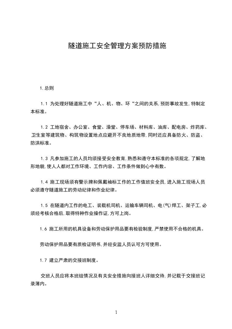 1.1 为处理好隧道施工中“人、机、物、环“之间的关系,预防事故发生,特制定本标准。