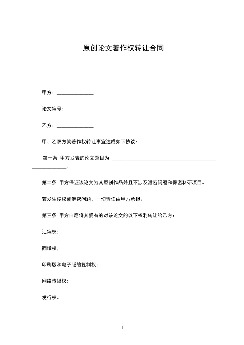 第一条 甲方发表的论文题目为 ________________________________________________________(以下简称“该论文”)。