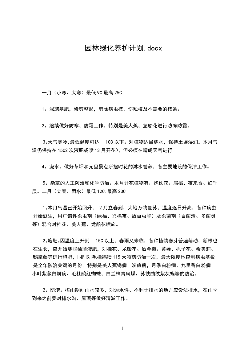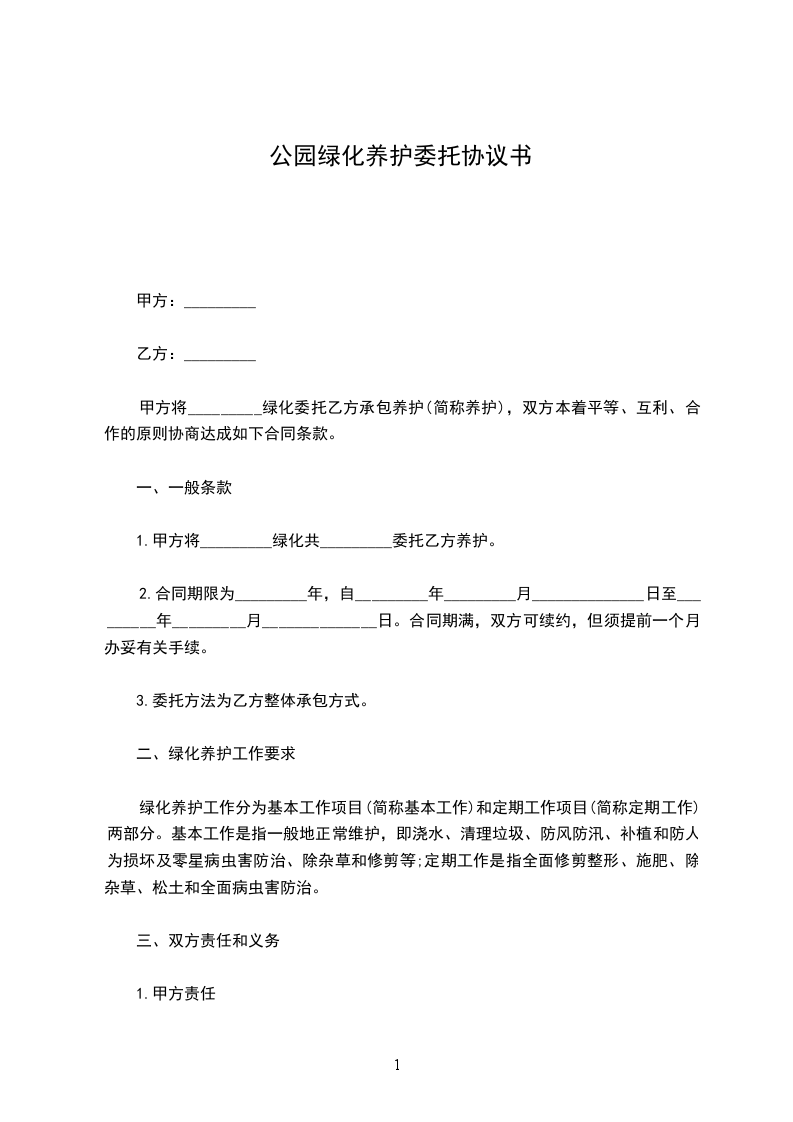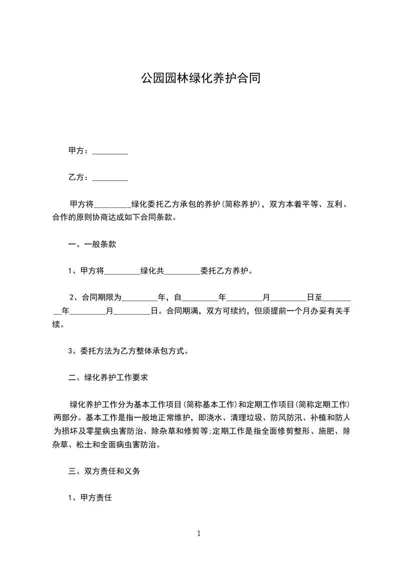 1、养护期限内,乙方应按照绿化养护操作规程及绿化养护质量标准,合理组织,精心养护,保质保量完成养护管理任务。