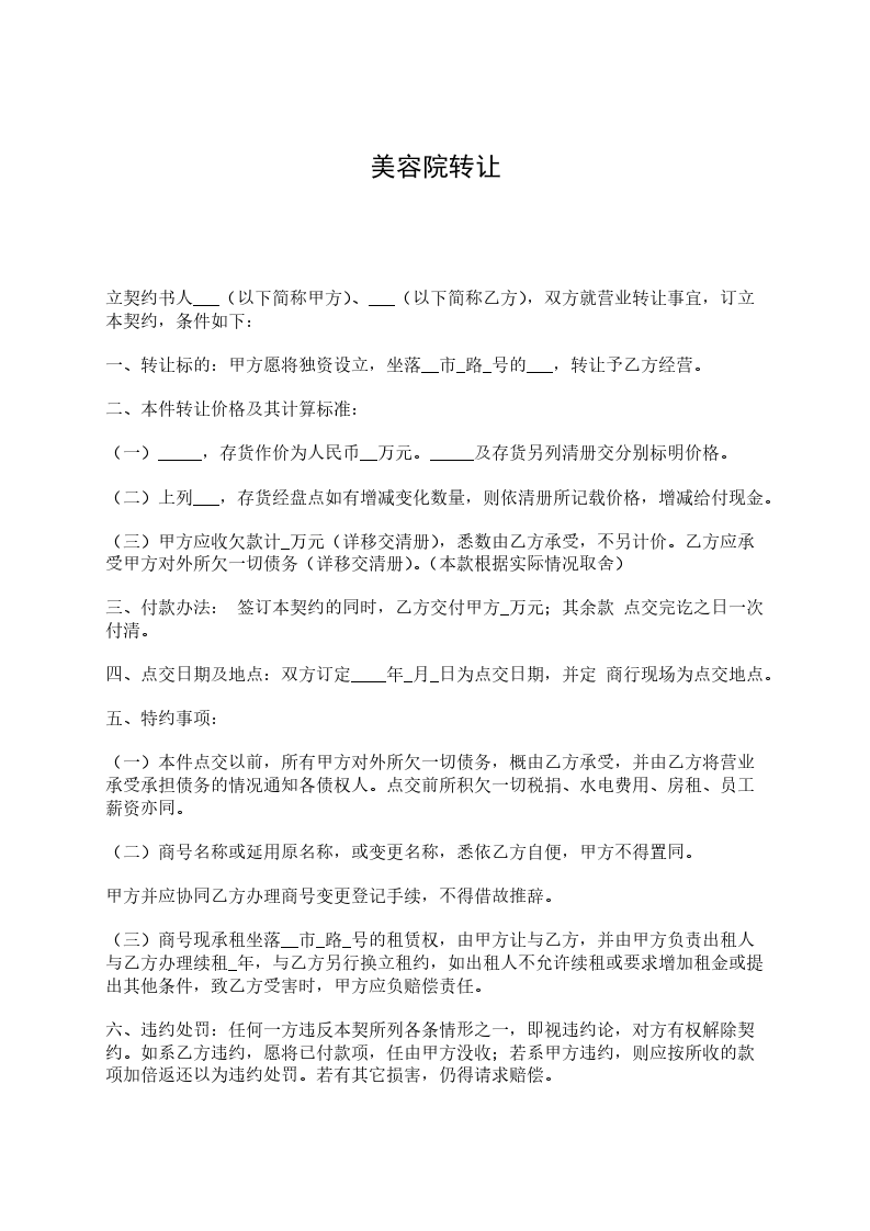 五、甲乙双方于20____年_月_日正式签订本转让协议书。法律效力自本协议书签订之日起生效。