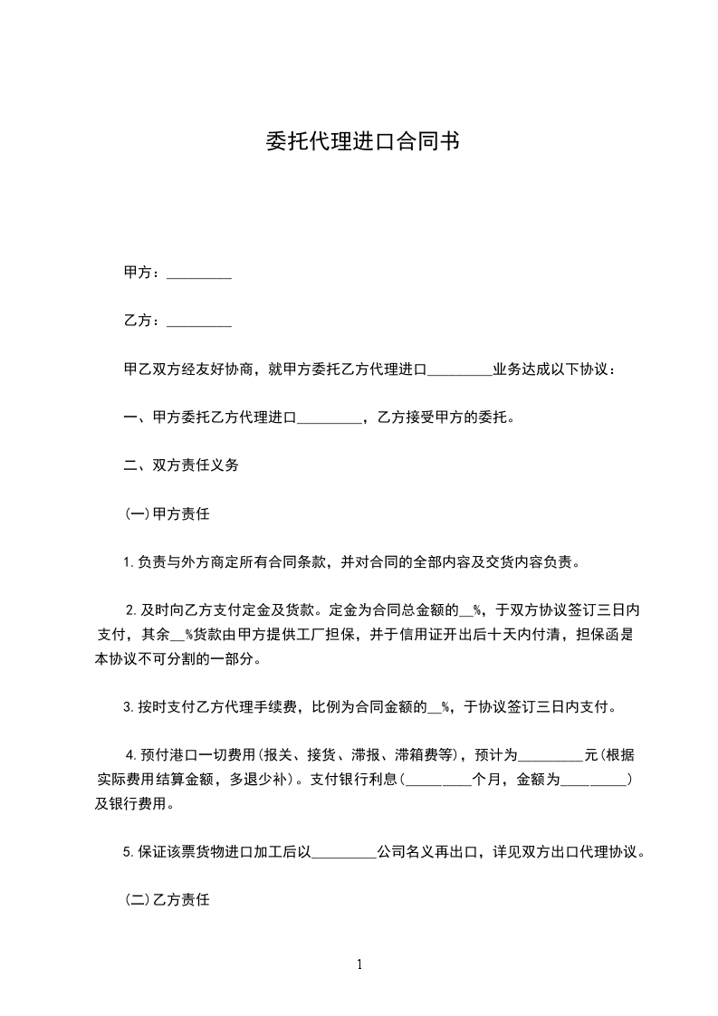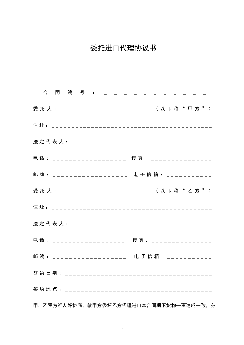 甲乙双方经友好协商,就甲方委托乙方代理进口_________业务达成以下协议: