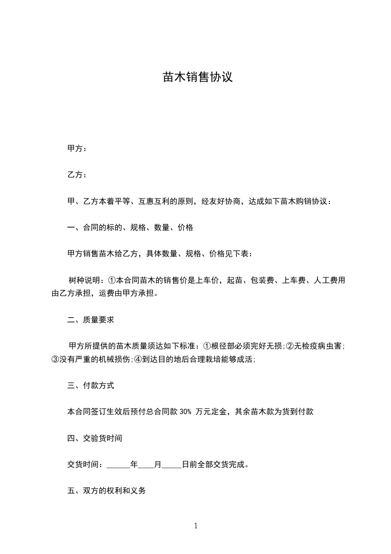 甲、乙方本着平等、互惠互利的原则,经友好协商,达成如下苗木购销协议: