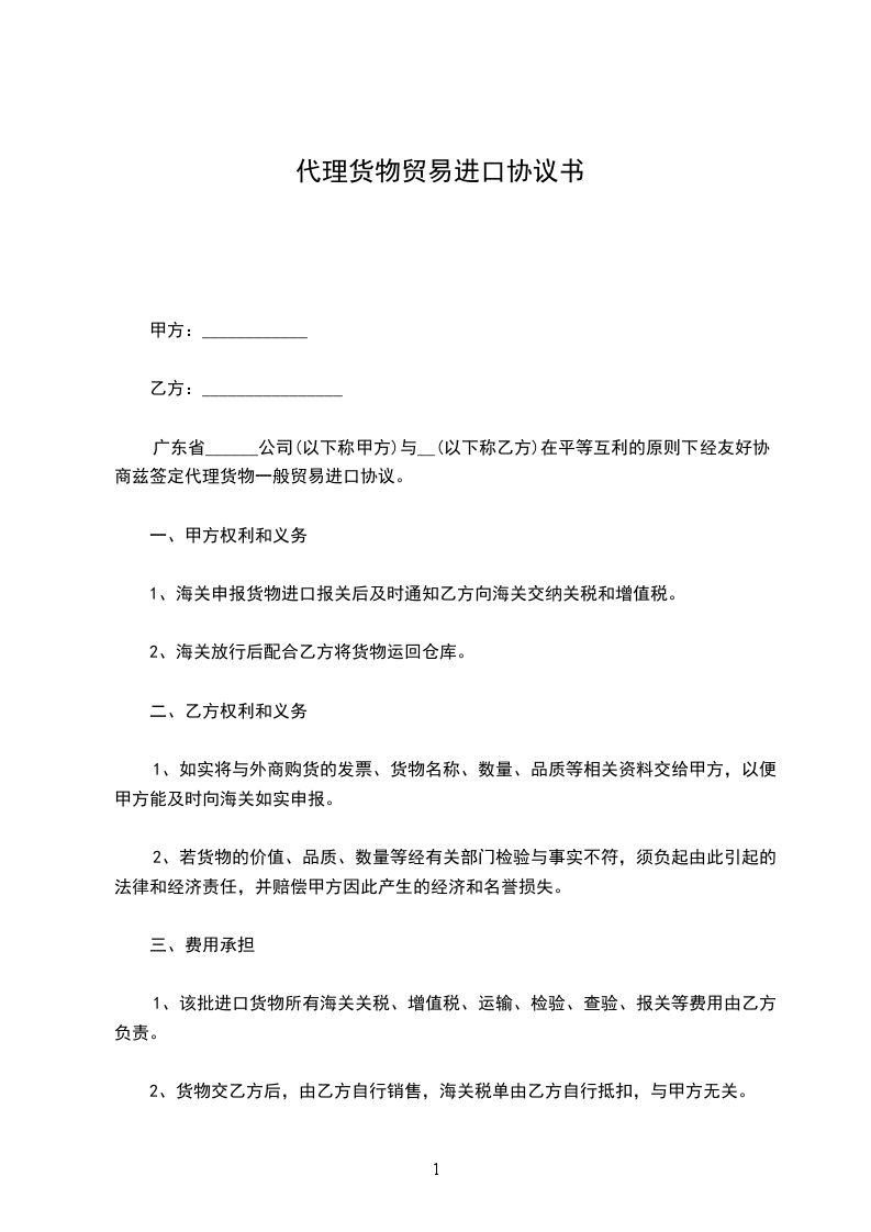 1.7甲方应在本合同规定的期限内向乙方支付在处理甲方货物过程中所产生的进出口相关费用。