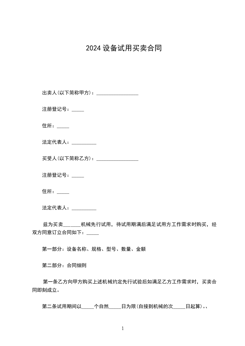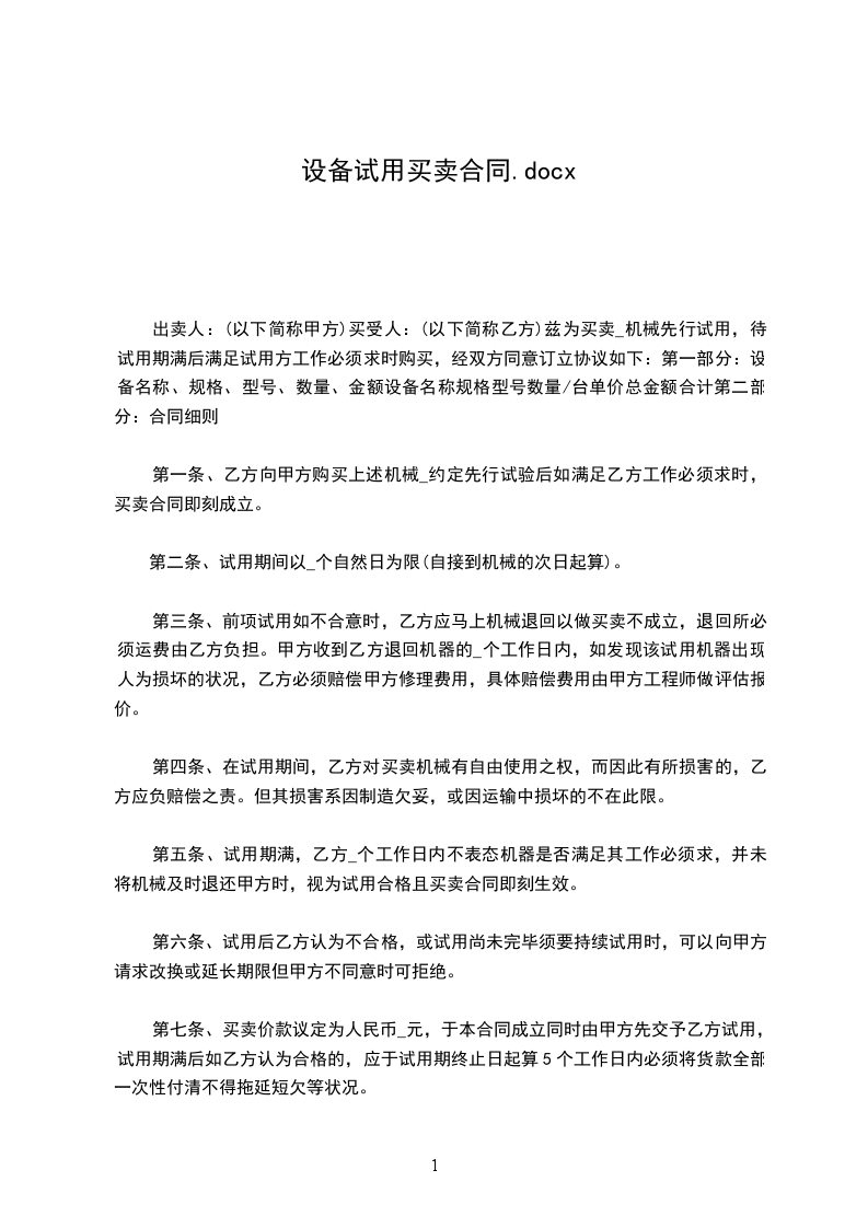 兹为买卖机械并先行试用,双方订立协议如下: