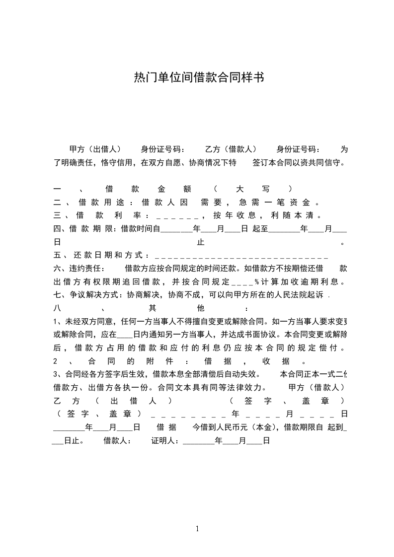 甲方(出借人) 身份证号码: 乙方(借款人) 身份证号码: 为了明确责任,恪守信用,在双方自愿、协商情况下特 签订本合同以资共同信守。