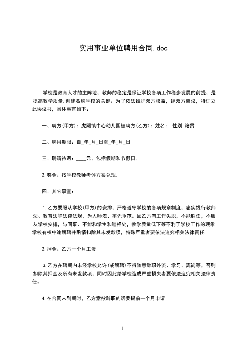 一、聘方(甲方):虎踞镇中心幼儿园 被聘方(乙方):姓名:____________性别_____籍贯______