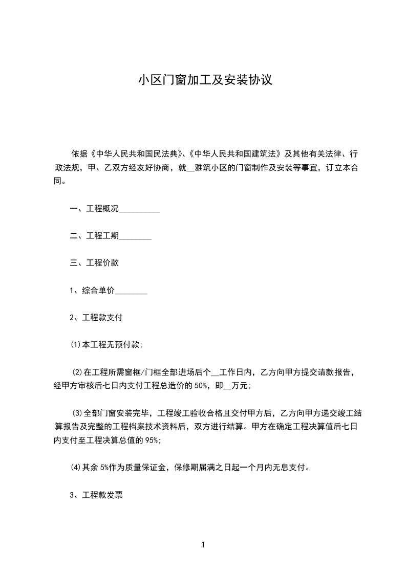 依据《中华人民共和国民法典》、《中华人民共和国建筑法》及其他有关法律、行政法规,甲、乙双方经友好协商,就______小区的门窗制作及安装等事宜,订立本合同。