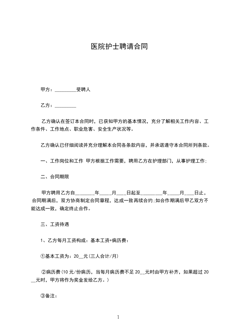 一、工作岗位和工作 甲方根据工作需要,聘用乙方在护理部门,从事护理工作;