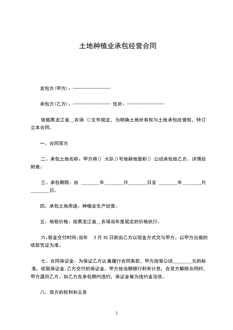 依据黑龙江省__农场 ()文件规定,为明确土地所有权与土地承包经营权,特订立本合同。