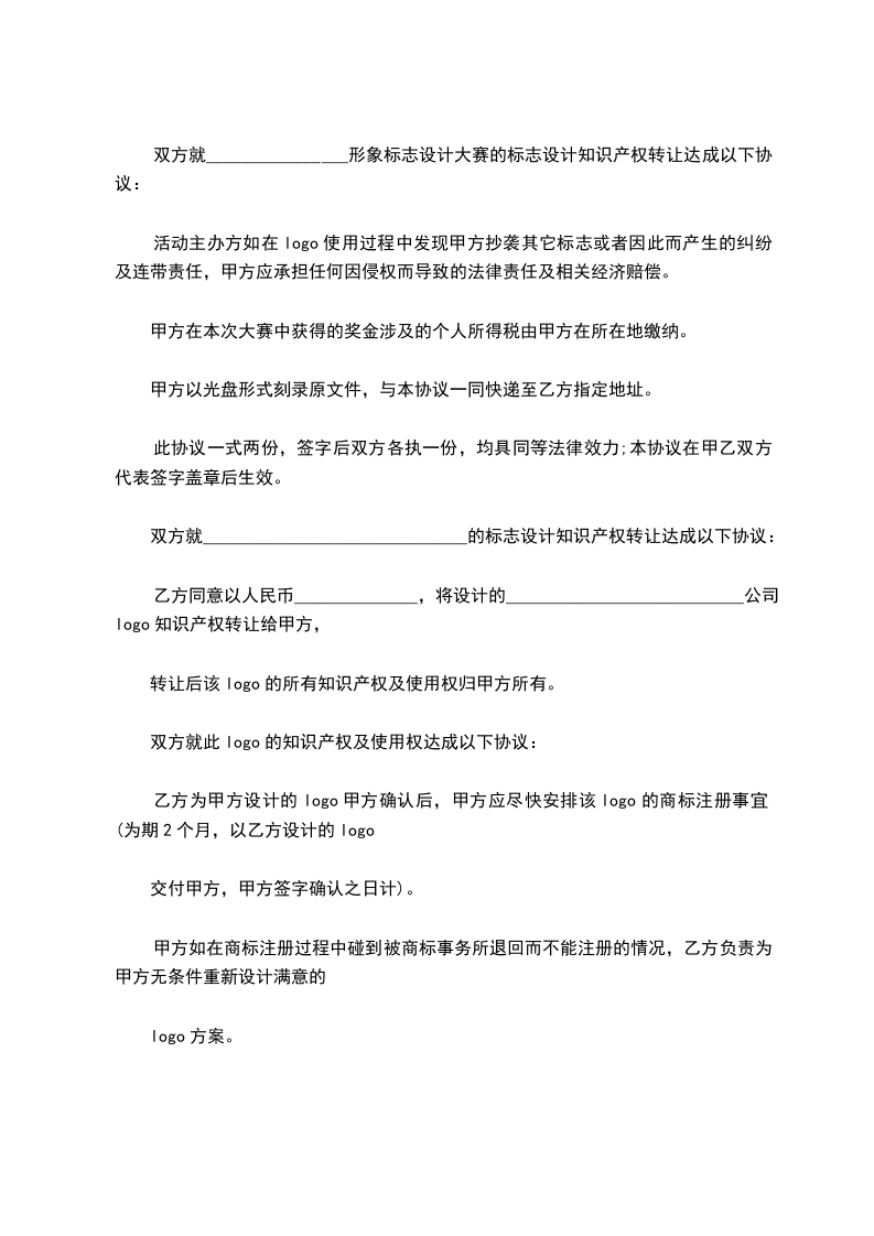 乙方同意以人民币______________,将设计的___________________________公司logo知识产权转让给甲方,