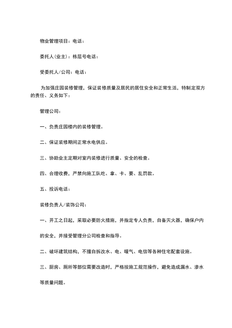 为加强庄园装修管理,保证装修质量及居民的居住安全和正常生活,特制定双方的责任、义务如下: