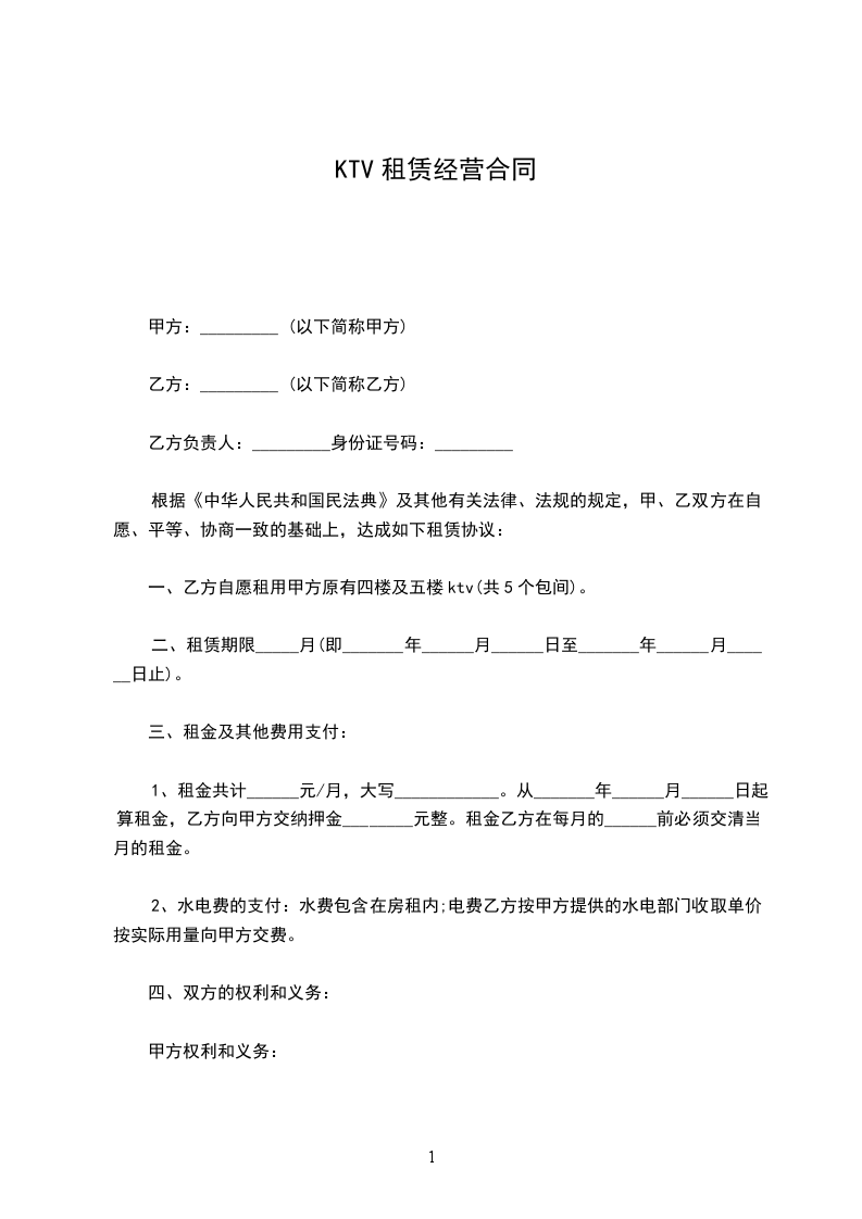 一、乙方自愿租用甲方原有四楼及五楼ktv(共5个包间)。