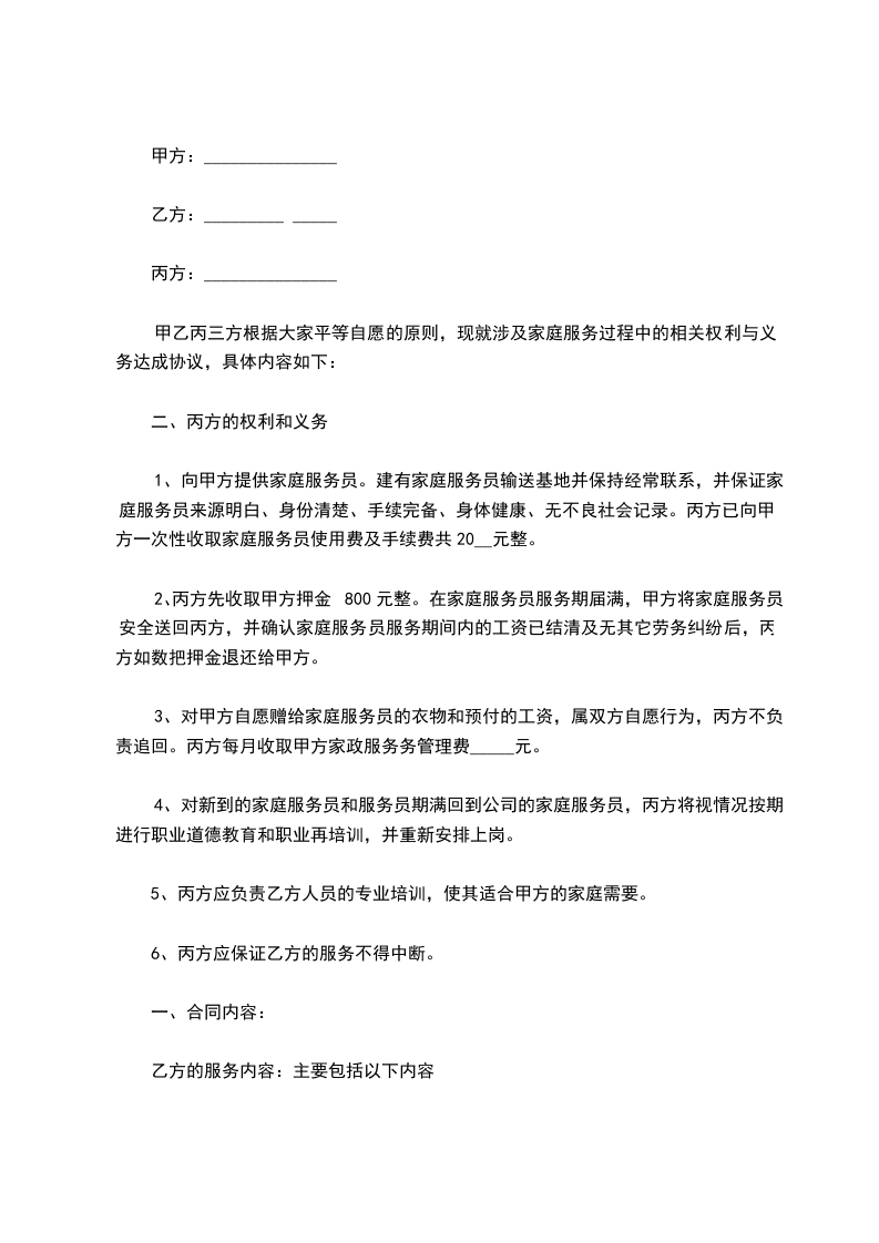 1、照顾老人的起居生活(整理内务、洗衣服、洗澡、打扫家庭卫生、保证老人的安全)如果老人出现问题要及时通知甲方。
