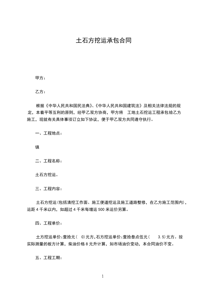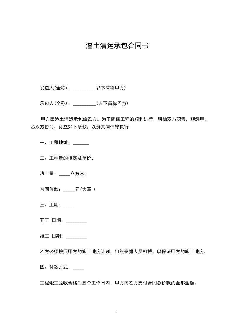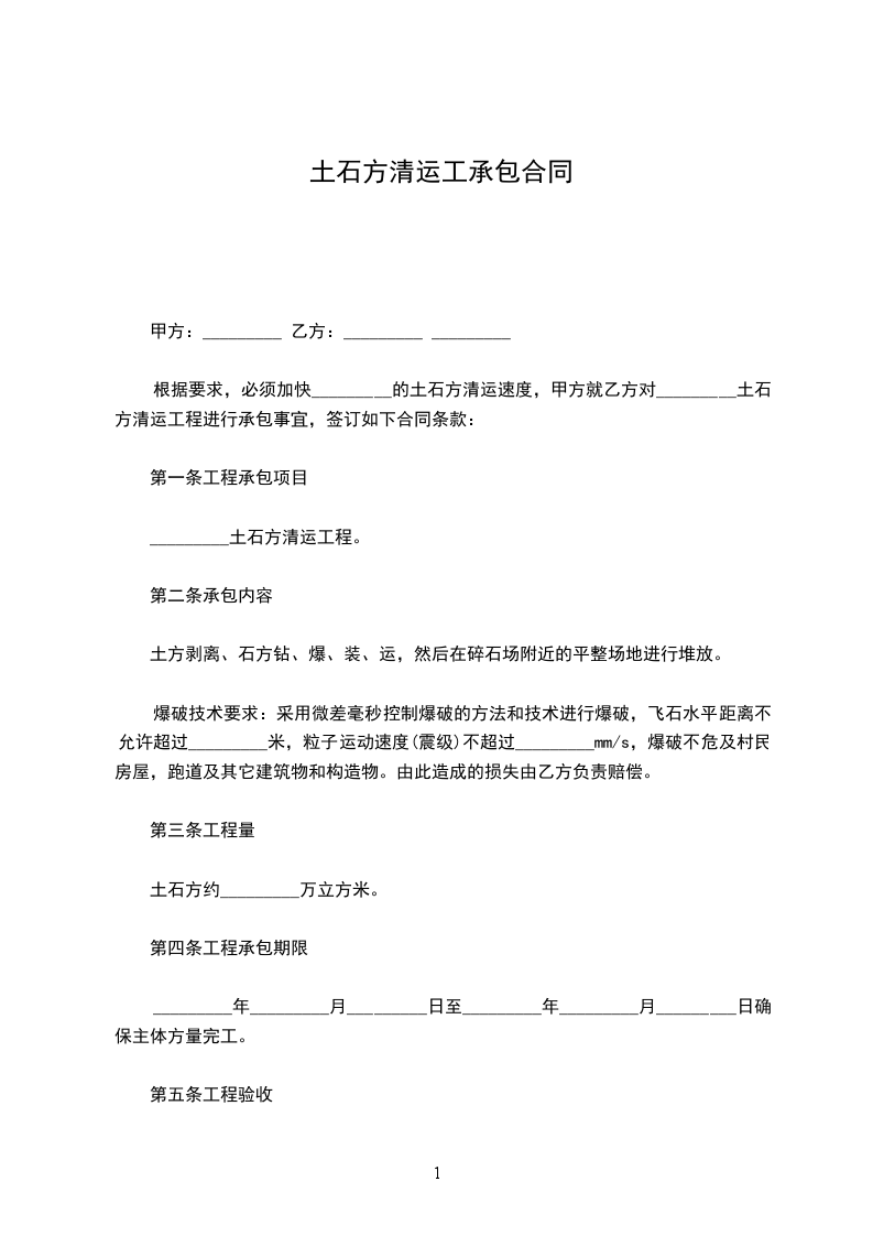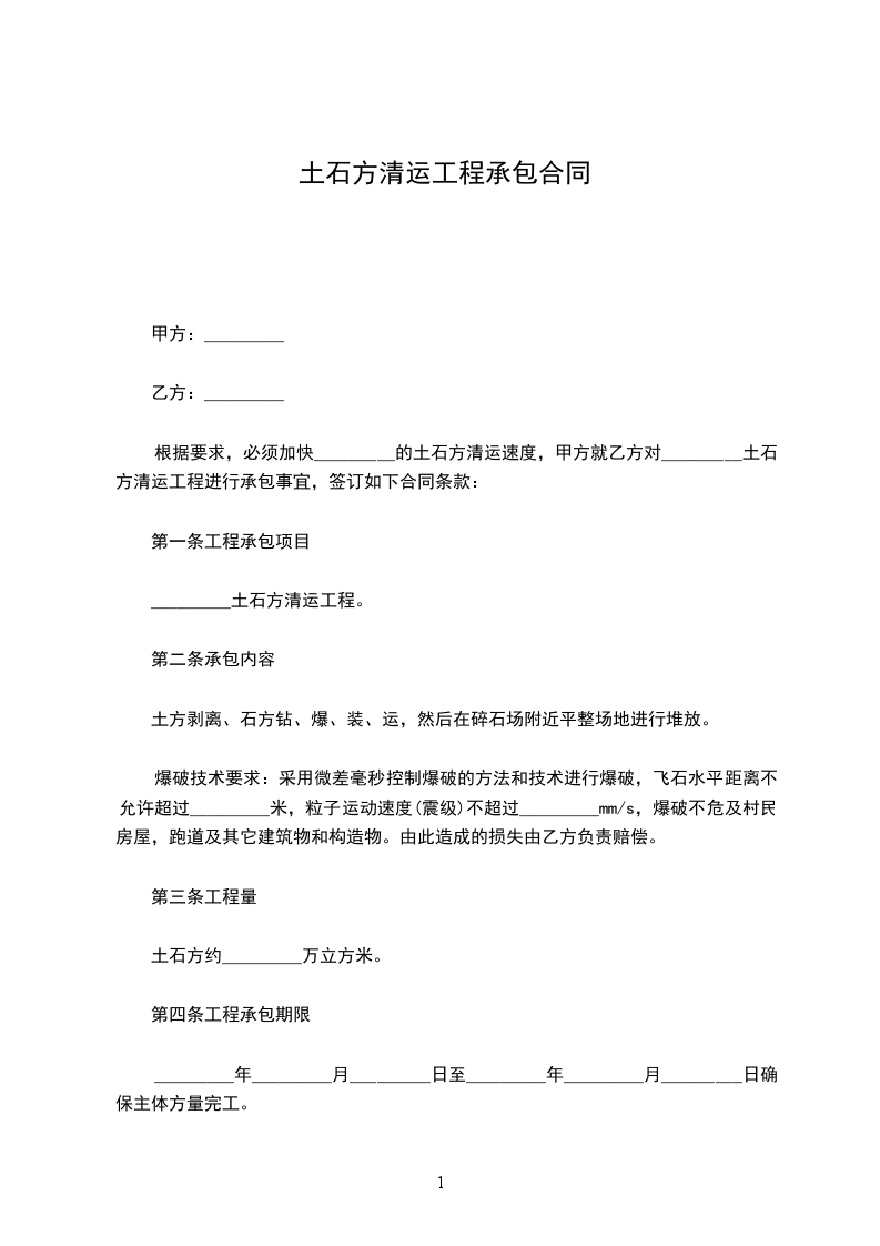 根据要求,必须加快_________的土石方清运速度,甲方就乙方对_________土石方清运工程进行承包事宜,签订如下合同条款:
