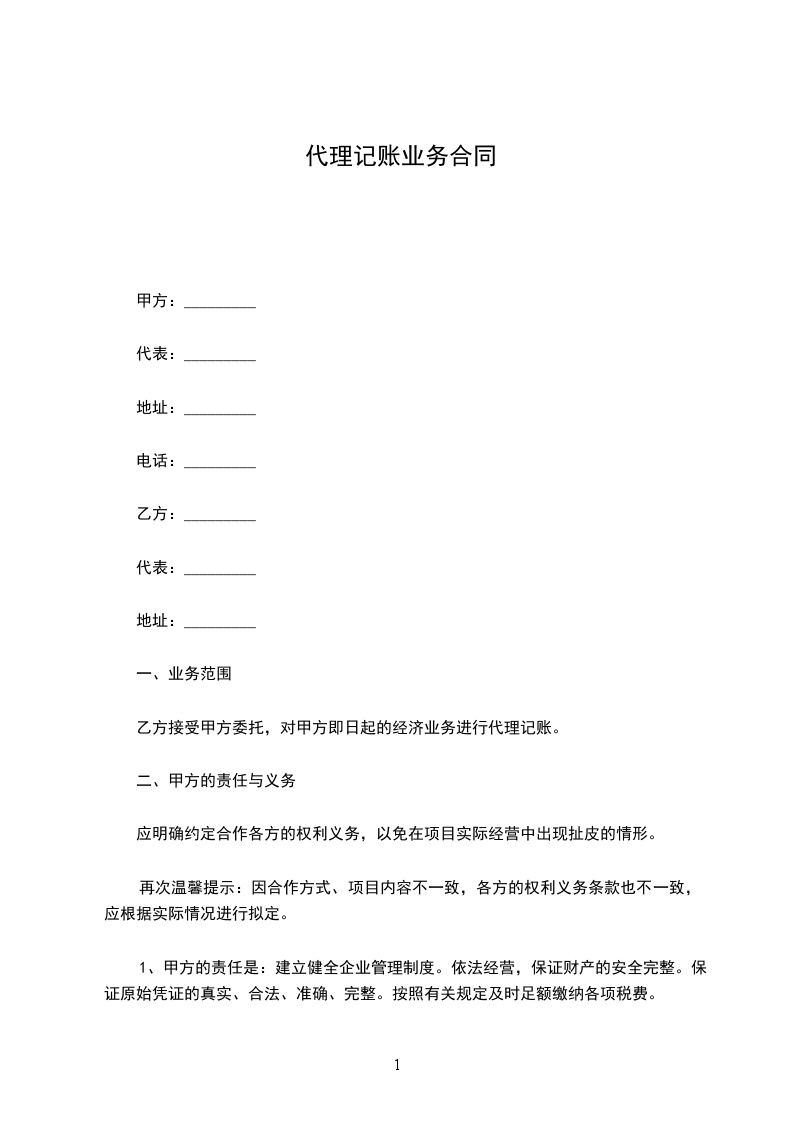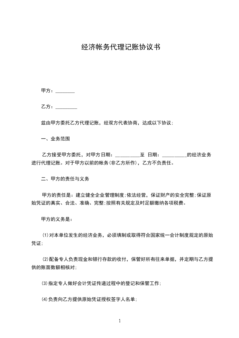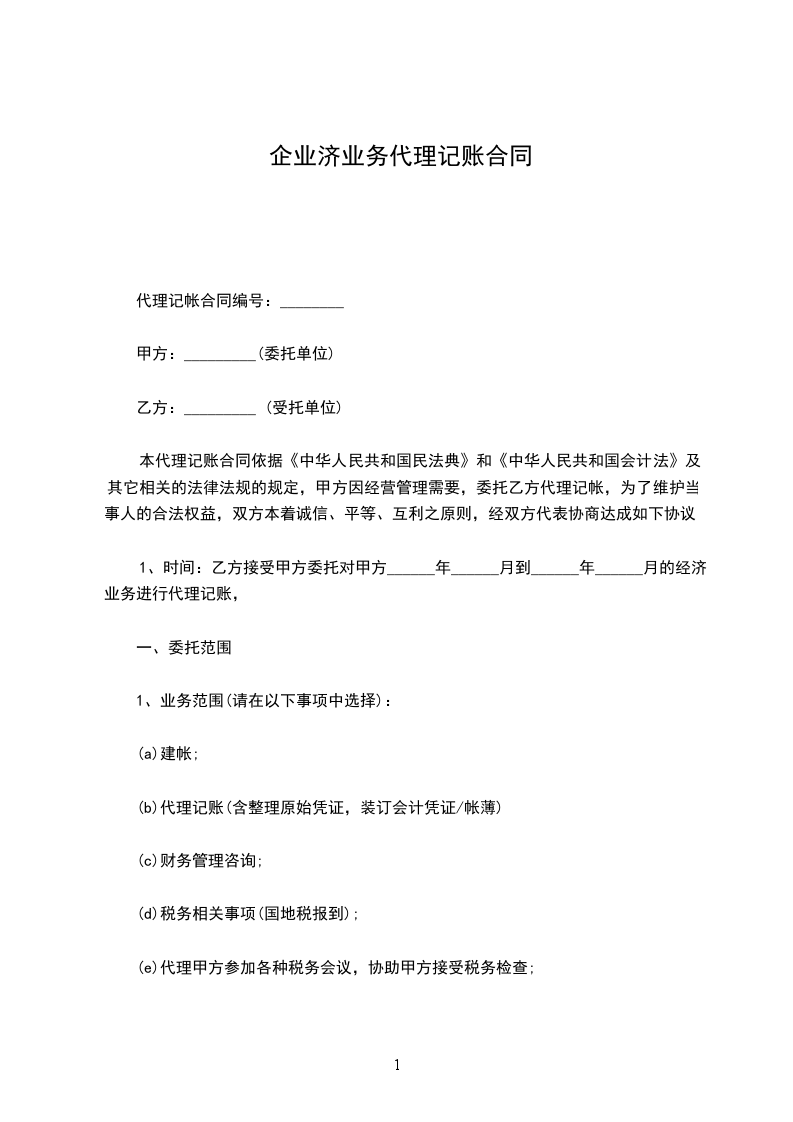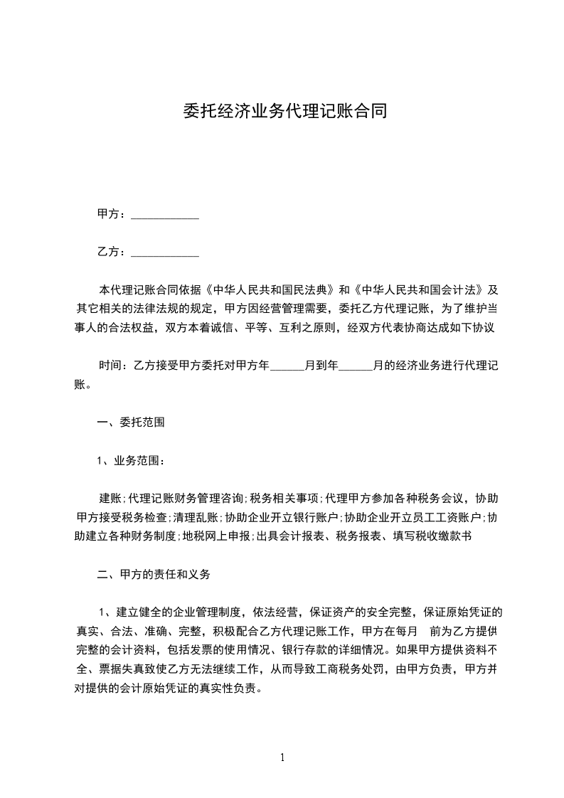 1.时间:乙方接受甲方委托对甲方_______年______月______日到_______年______月______日的.经济业务进行代理记账。